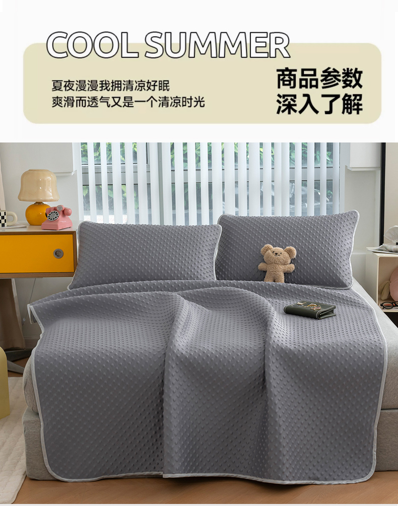 (总)默忆 2026新款3D轻奢风A类直播网红热款凉感丝冰豆豆三明治复合床单款凉席两件套三件套,贵族灰,果绿,孔雀蓝,墨绿,时尚粉,天空蓝,香芋紫,熏衣紫