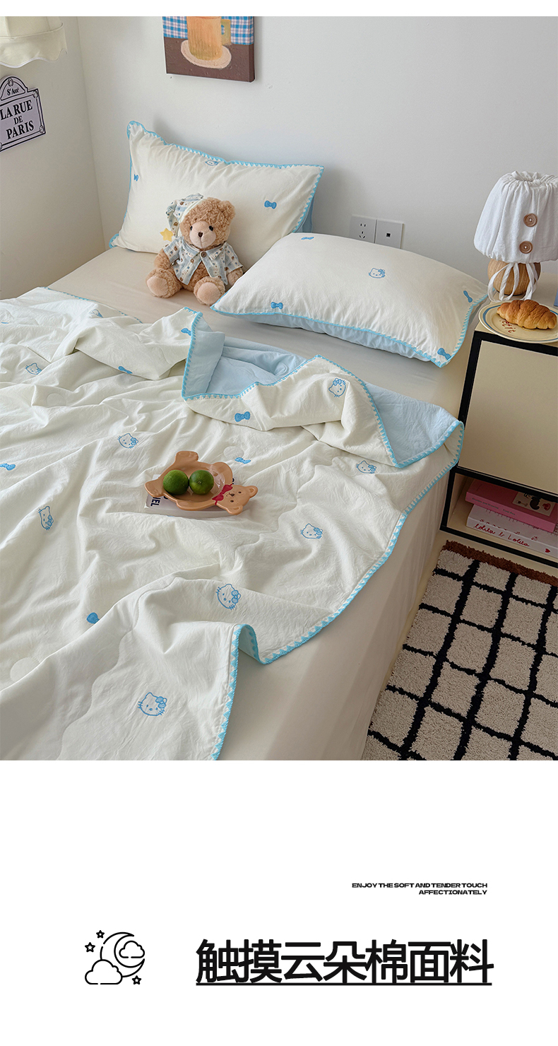 顾里家纺 2026新款韩风刺绣云朵棉夏被夏凉被空调被 安睡猫
