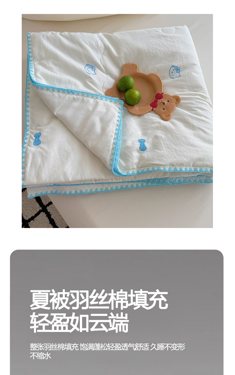 商品名称:顾里家纺 2026新款韩风刺绣云朵棉夏被夏凉被空调被 安睡猫