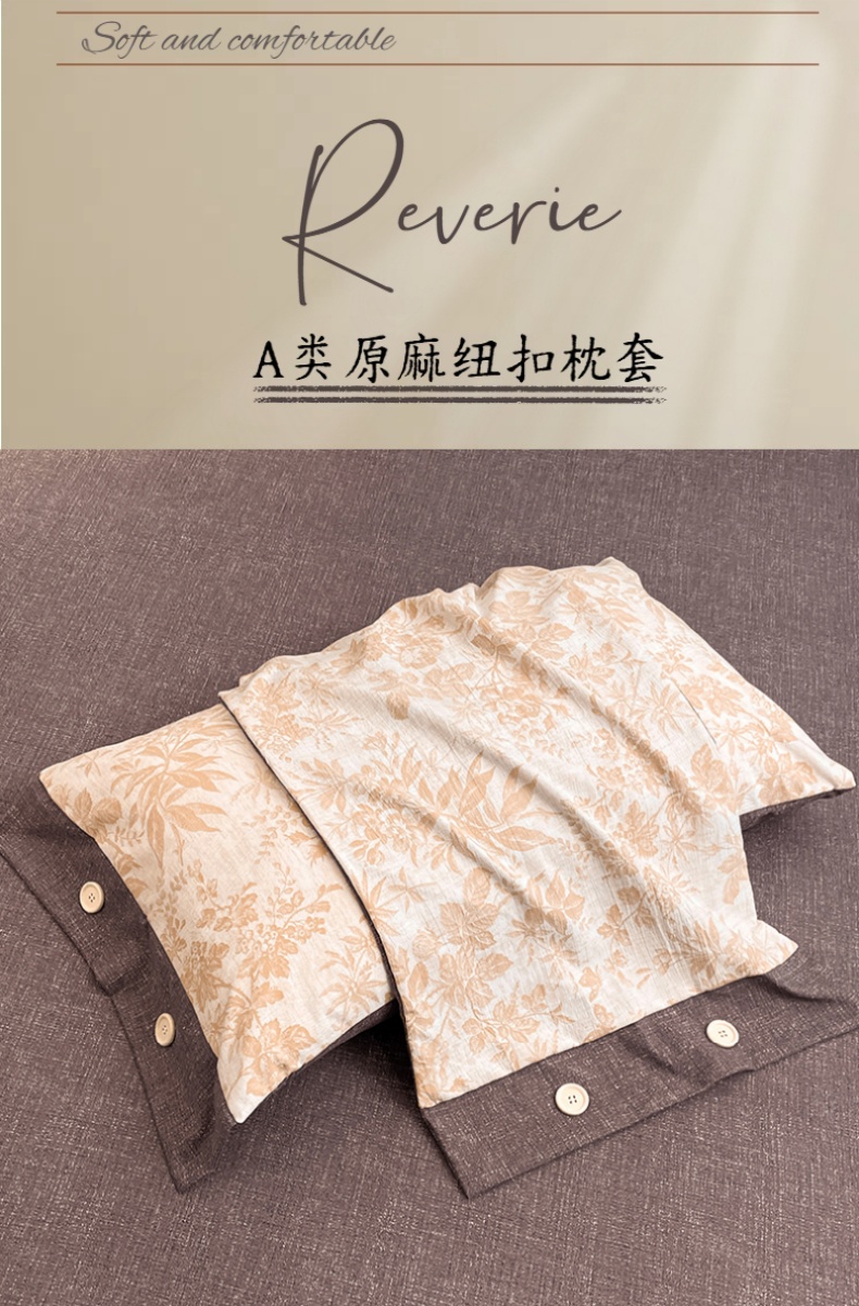 商品名称:梦舒羽 2026新款A类原麻纽扣枕套宿舍单只枕芯套枕头套一对装枕芯内胆套 忆秋风