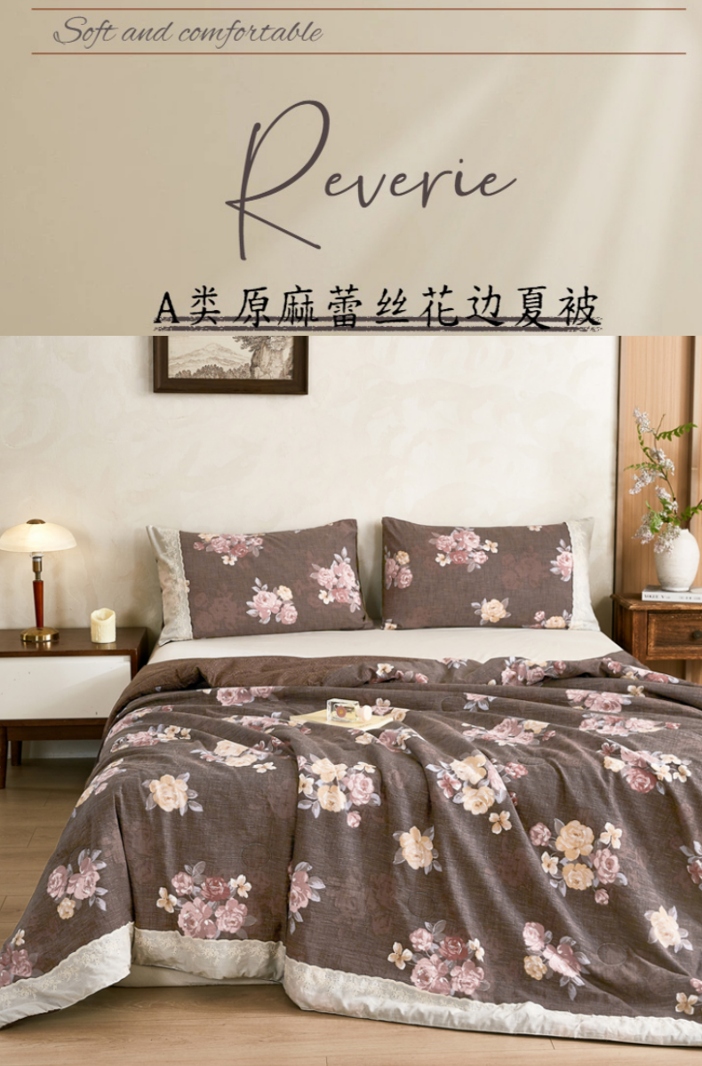 (总)梦舒羽 2026新款A类夏天原麻全棉蕾丝花边加厚夏被宿舍双人床仿亚麻被子被芯,安紫,清风花叙,春风序,繁花,梵希,古堡花园-咖,花与蝶,金枝玉叶,忆秋风