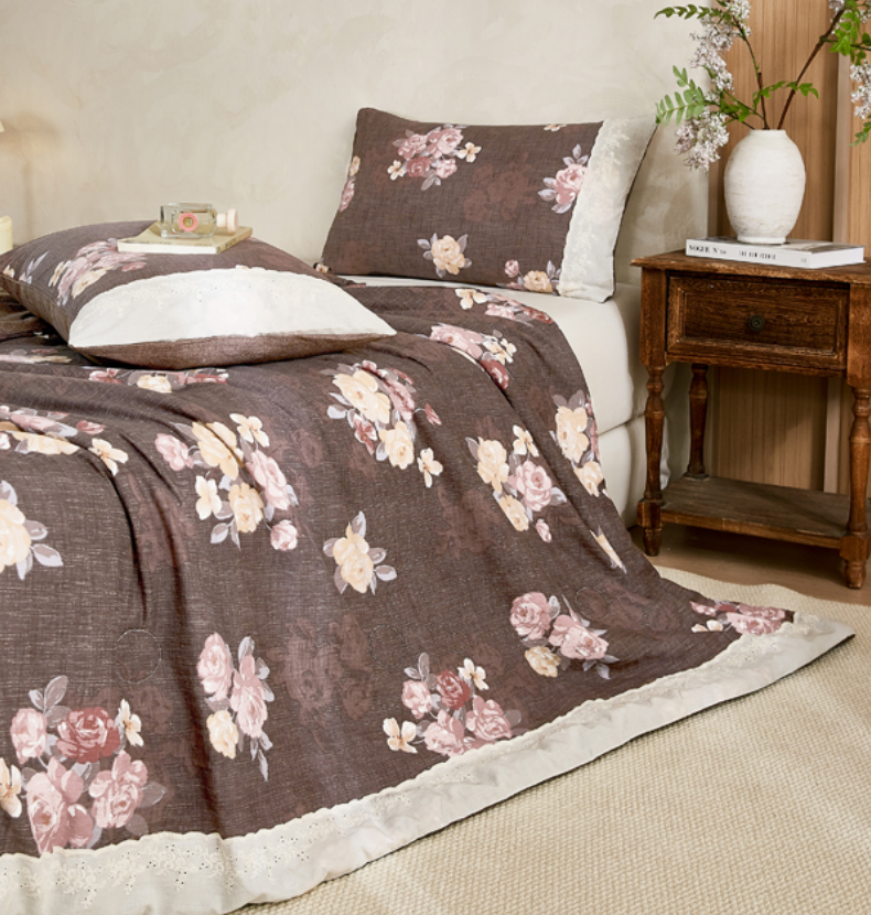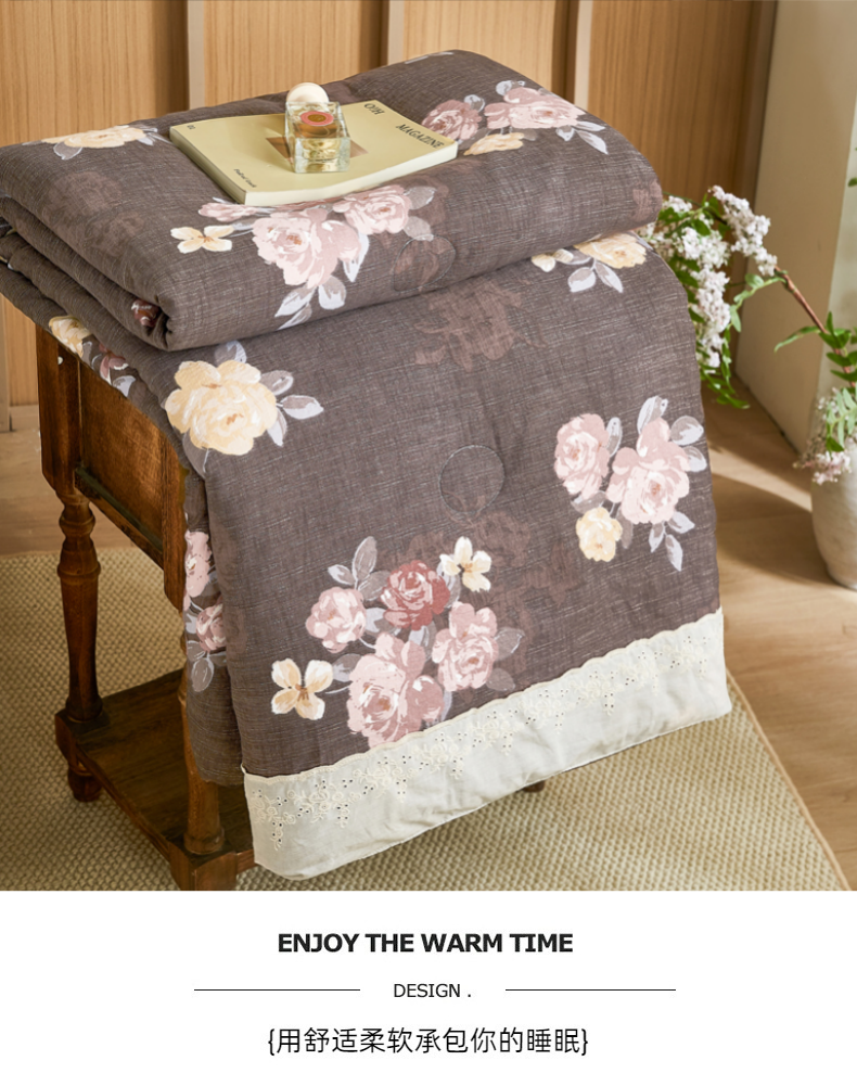 商品名称:梦舒羽 2026新款A类夏天原麻全棉蕾丝花边加厚夏被宿舍双人床仿亚麻被子被芯 繁花