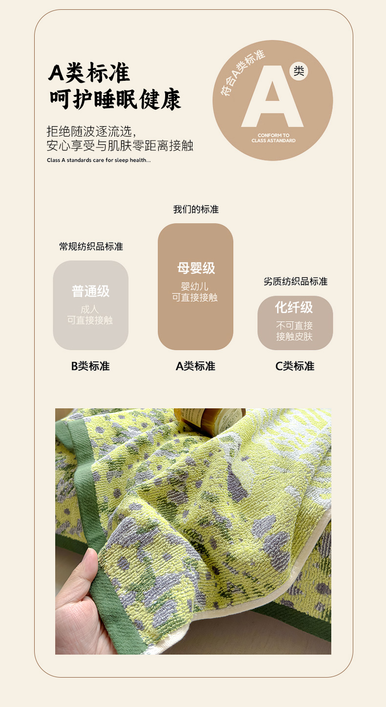 商品名称:乐家毛巾被(工厂自产自销) 2026新款A类全棉纯棉色织提花抗菌毛圈枕巾 棕色向阳花