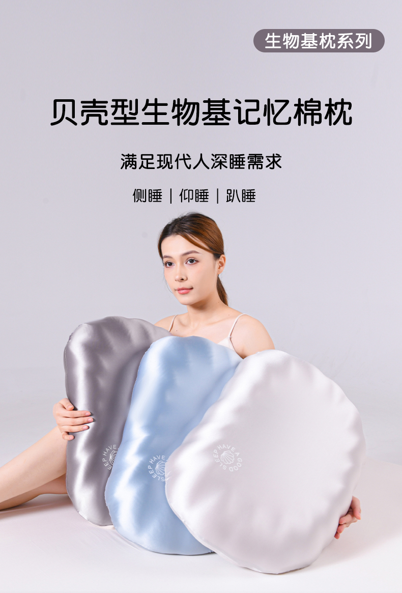 商品名称:(总)圣靓家纺 2026春夏新款贝壳零压力生物基枕慢回弹护颈椎枕头记忆棉枕芯