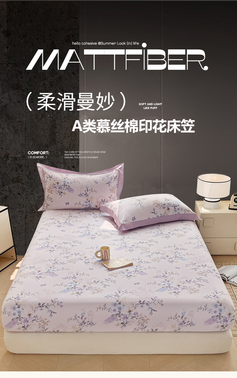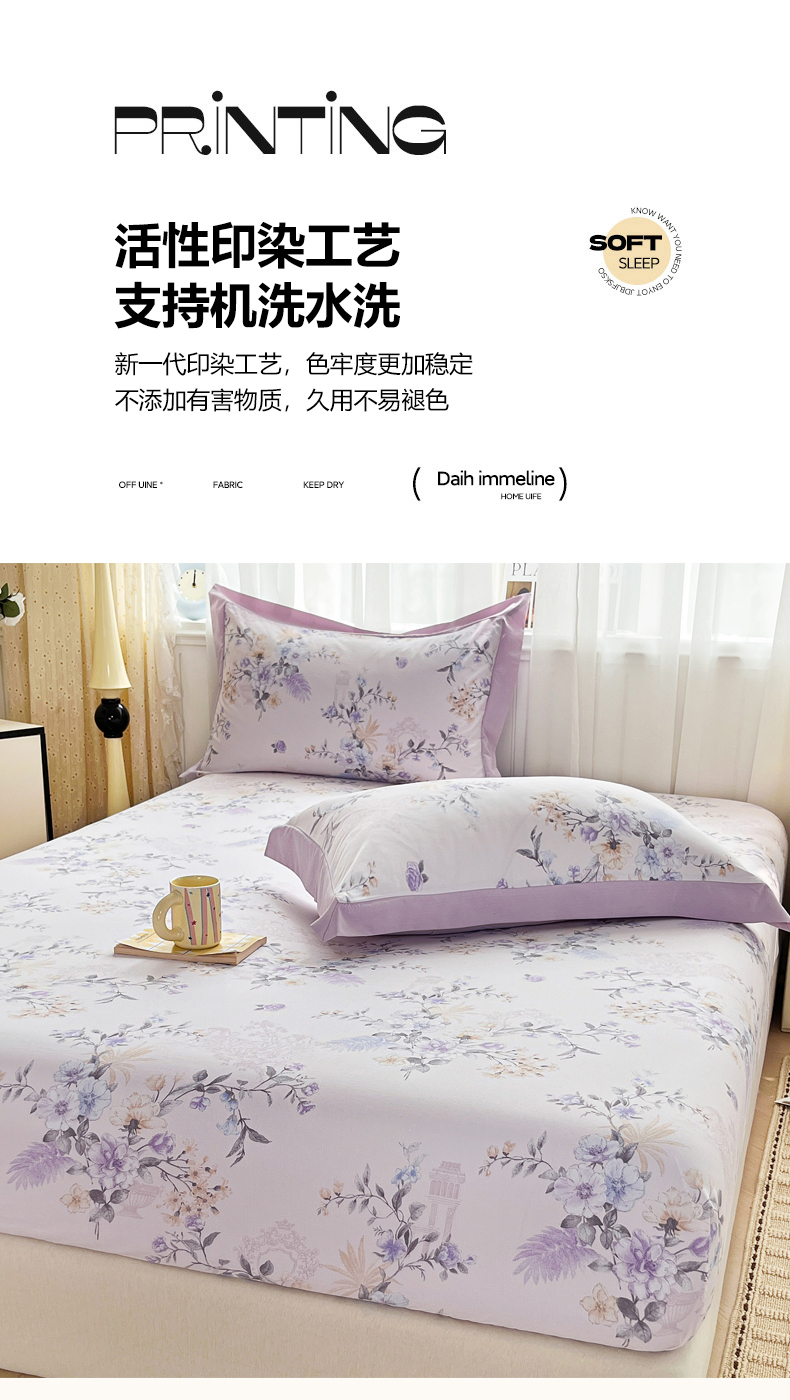 • 91家纺网 家纺一手货源 找家纺 慕木家纺 2026新款A类纯色印花慕丝棉床笠系列(抽空压缩可供跨境)(提供买家秀) 洛雅