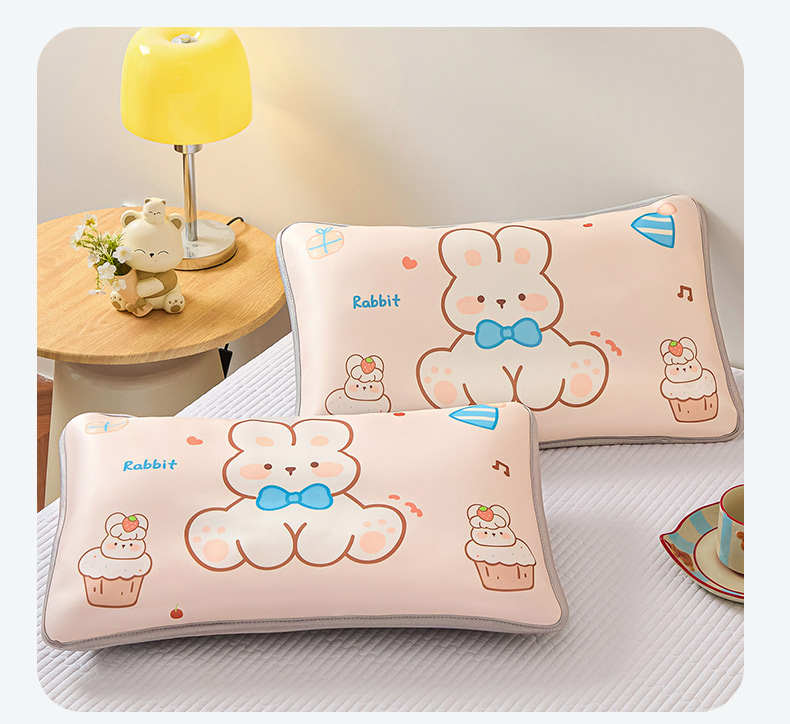 云恋家纺 2026新款儿童卡通A类冰丝凉席枕套一对装夏季凉感丝可拆枕头儿童学生单人枕芯套 爱心小熊