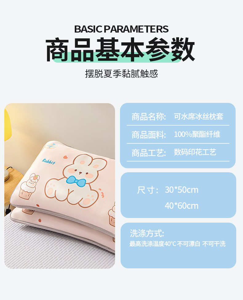 商品名称:云恋家纺 2026新款儿童卡通A类冰丝凉席枕套一对装夏季凉感丝可拆枕头儿童学生单人枕芯套 爱心小熊