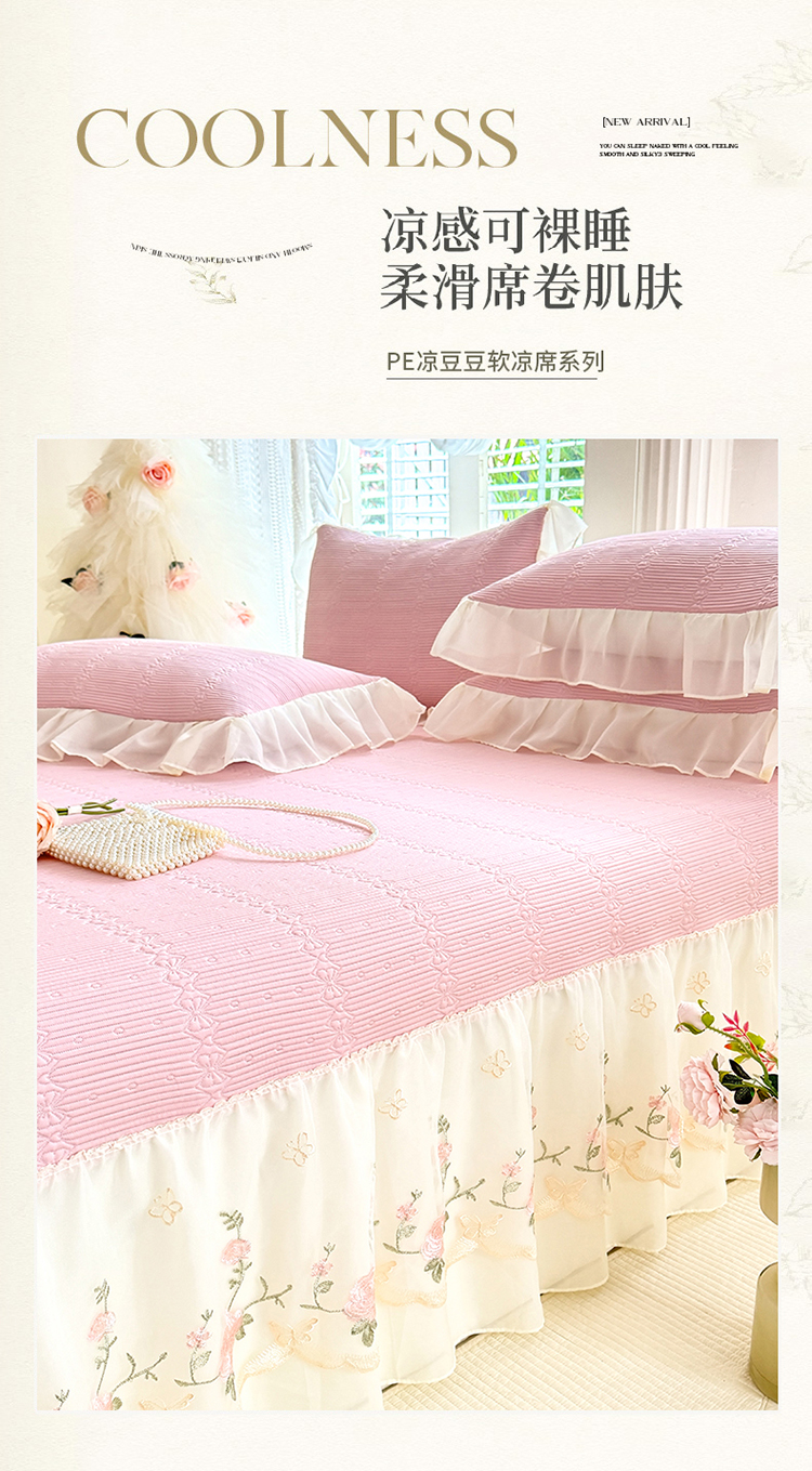 (总)苏米娜家纺SUMINA 2026新款PE高分子弯边工艺床裙款凉席三件套-可心,可心-冰川兰,可心-粉黛,可心-奶油白,可心-清新绿