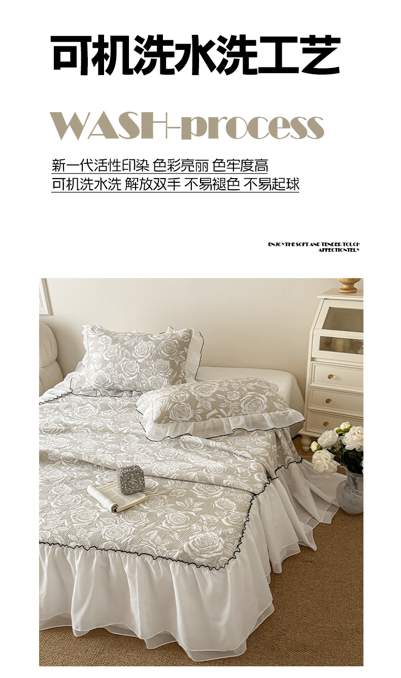 (总)吾欢心 2025新款公主风雪纺边四季通用夹棉床盖,床盖白,床盖粉,床盖黄,床盖咖,床盖绿,床盖抹茶绿,床盖紫