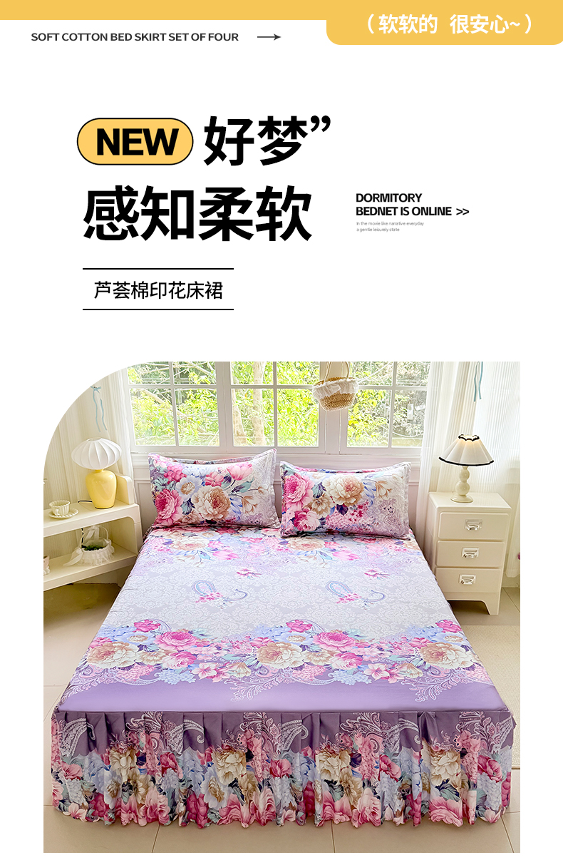 当前位置: 91家纺网 > 商品网购 > 床品套件 > 四件套 > 其它四件套 > 亿佳人 2026新款芦荟棉化纤四件套单床裙单枕套-床裙款四件套 鸿运
