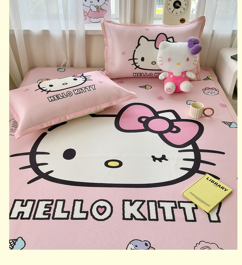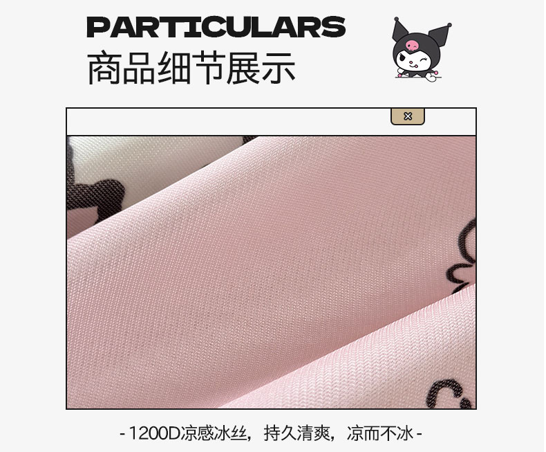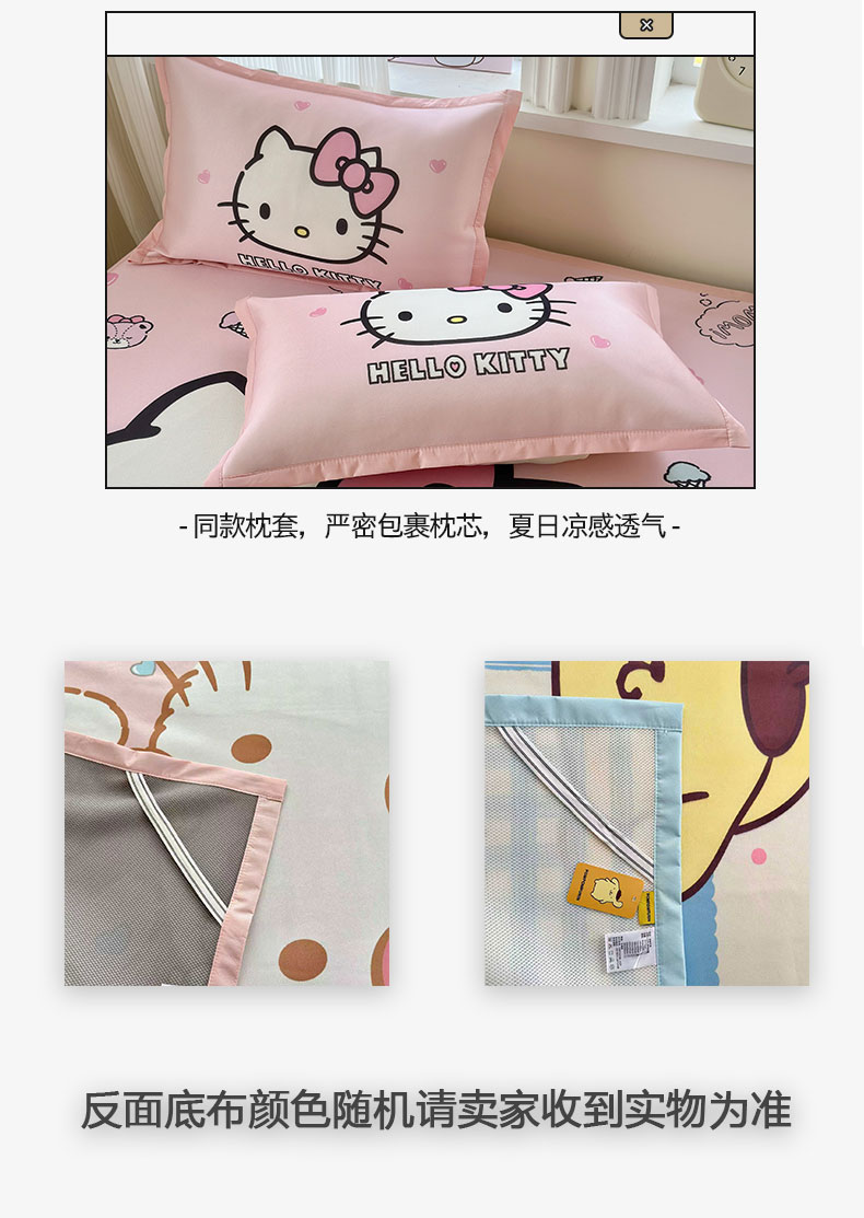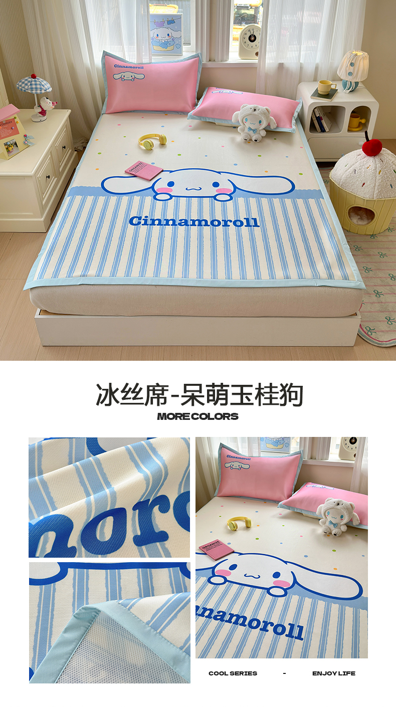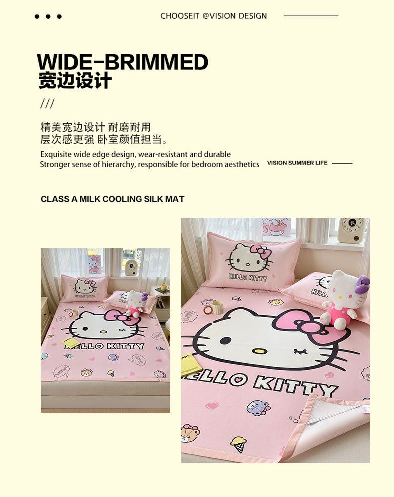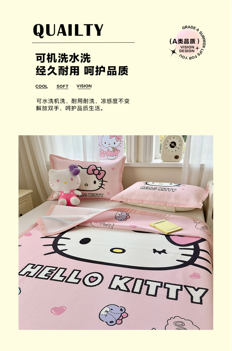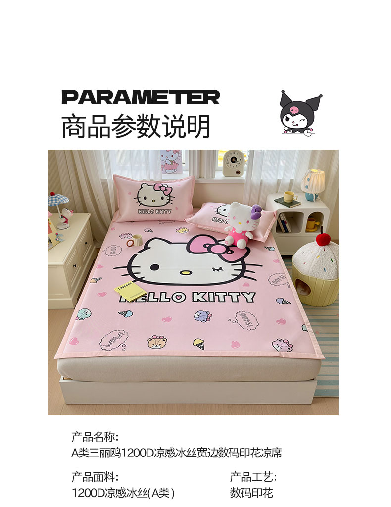 商品名称:桃子家居 2026新款A类三丽鸥授权数码印花中分子1200D凉感冰丝宽边凉感软席凉席席子 冰丝席-少女kt