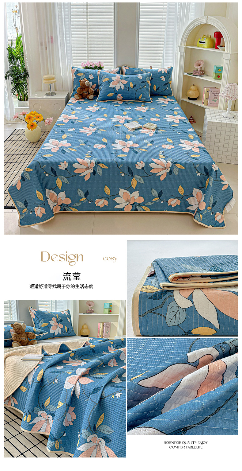文黛家居 2026新款全棉夹棉印花床盖三件套 流莹