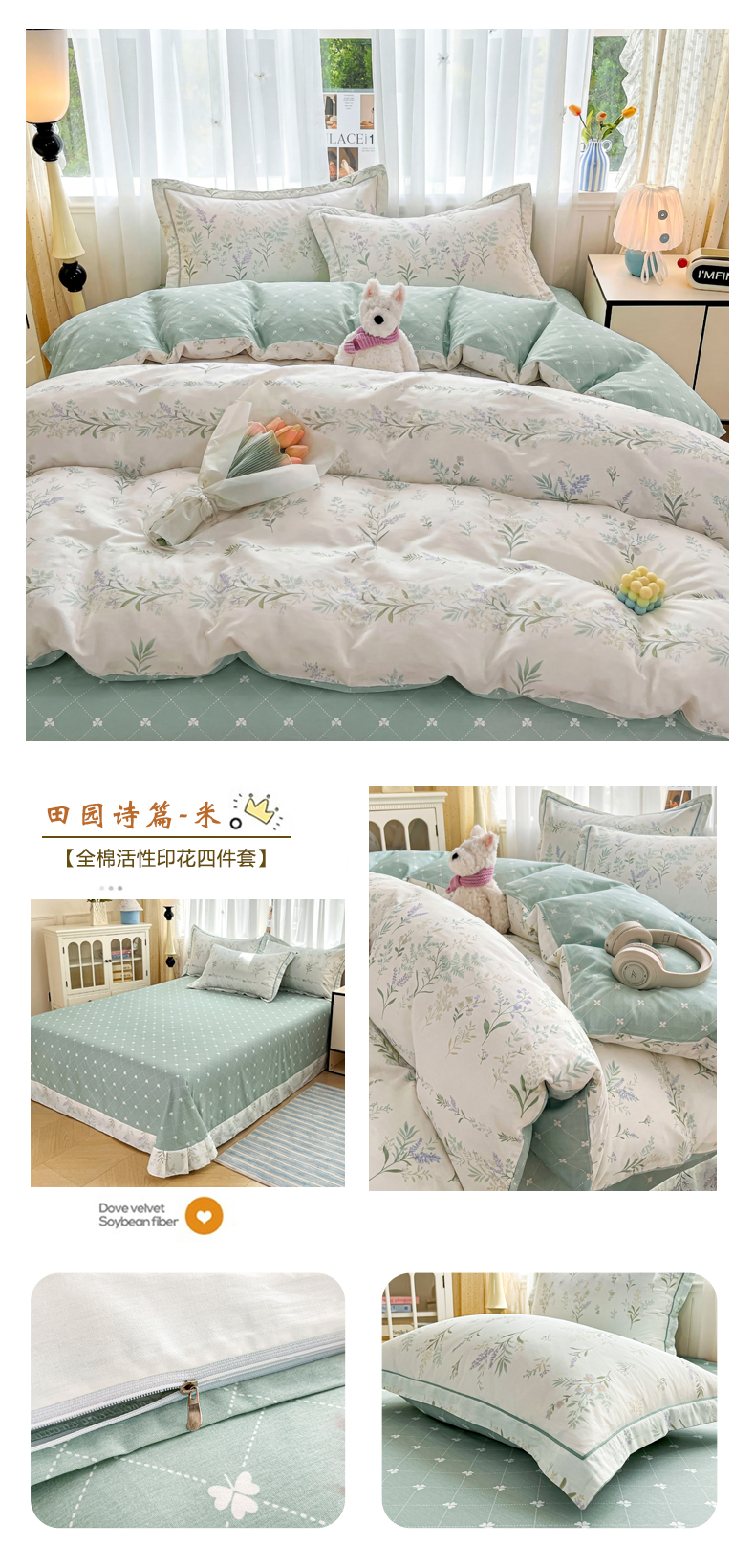 当前位置: 91家纺网 > 商品网购 > 床品套件 > 四件套 > 全棉普通四件套 > 美织缘家纺 2026直播爆款一字绣吊边床单款纯棉全棉四件套印花百分百(喷气高品质) 小苹果-绿