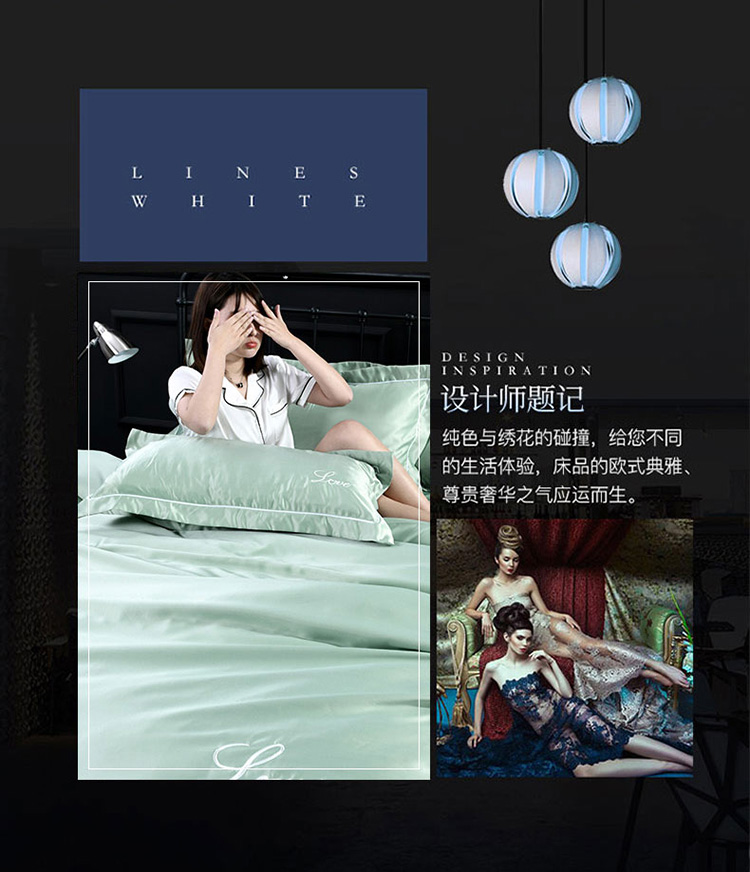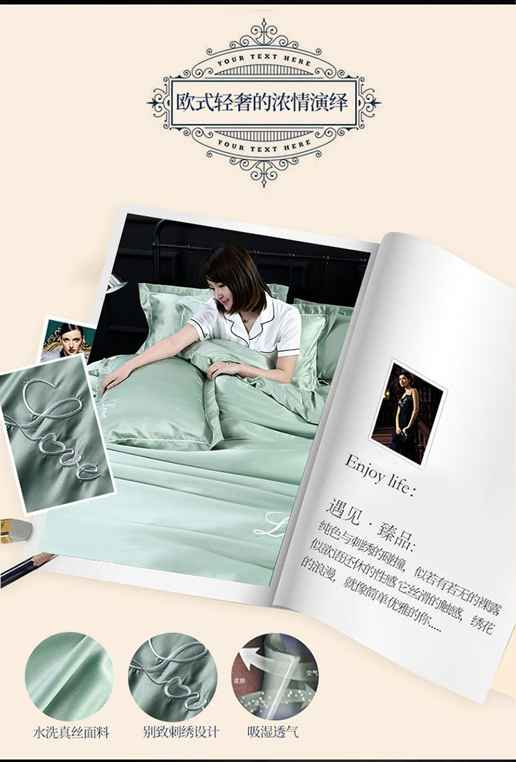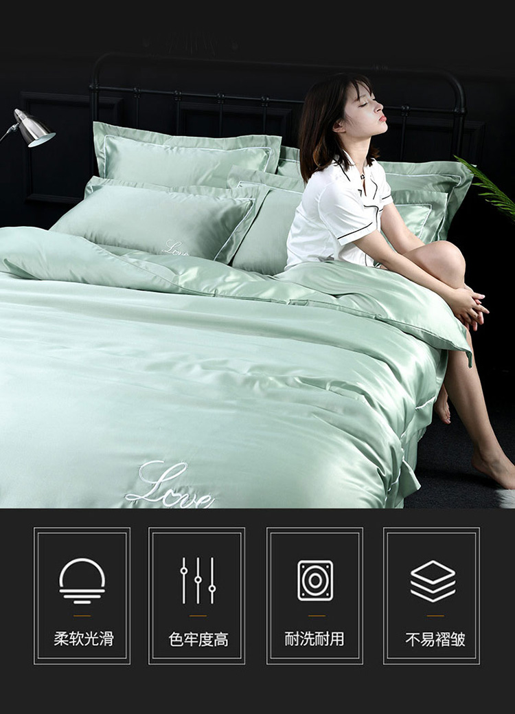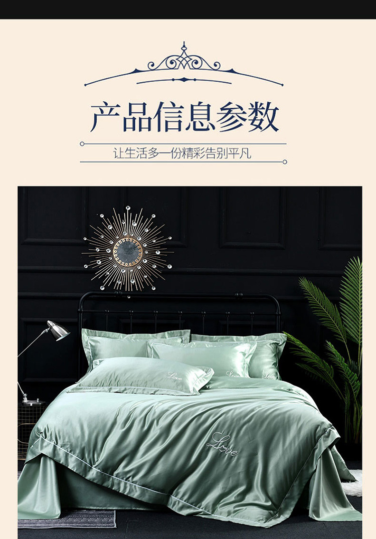 (总)意尚风情 2023新款天丝提花蕾丝刺绣四件套,薄荷绿,宾利兰,豆沙,高级灰,格调灰,姜黄,墨绿,少女粉,香芋紫,雅绿