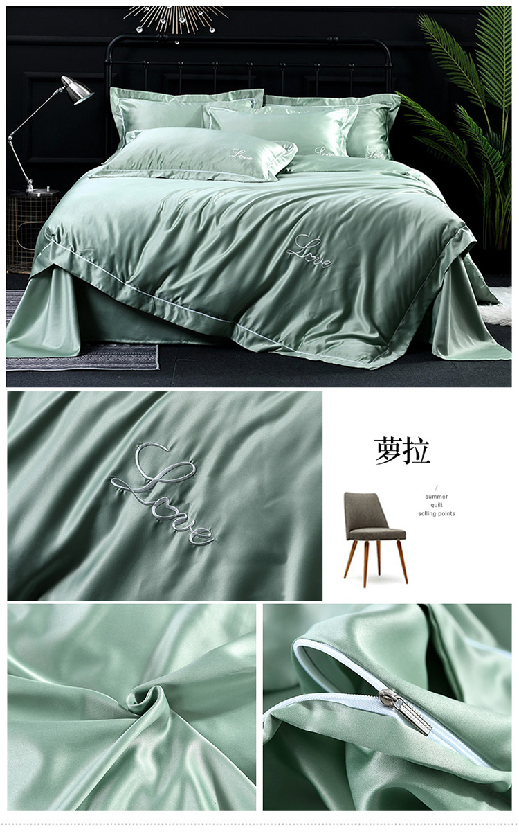 (总)意尚风情 2022新款莫代尔天丝水洗真丝绣花夏被四件套,宾利蓝,纯白,粉玉,高级灰,墨绿,深蓝,水绿,香槟