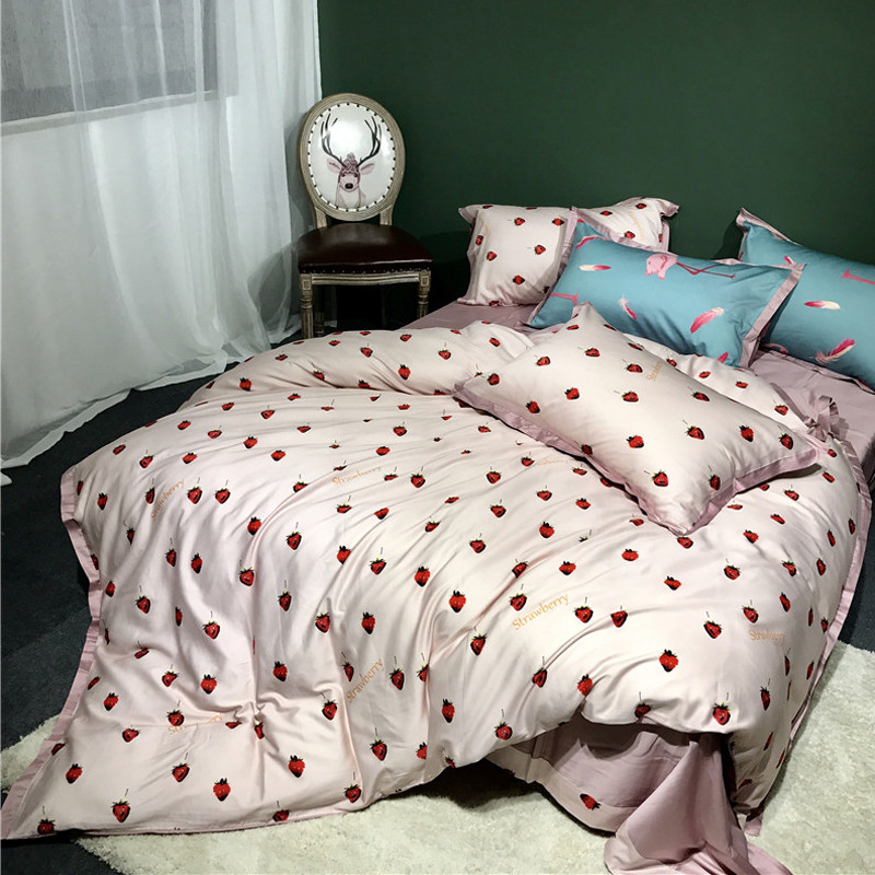 商品名称:优然居 2019小边款数码印花四件套 甜心草莓