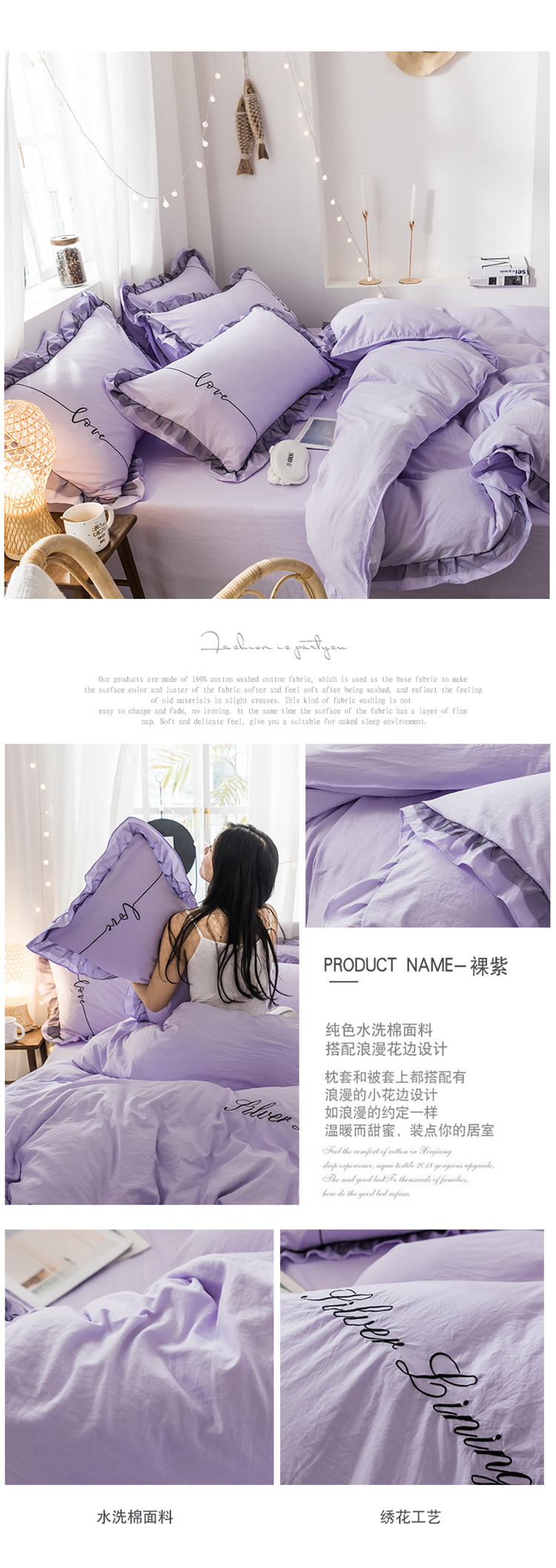 (总)AB家纺 2019新款水洗棉蕾丝边四件套