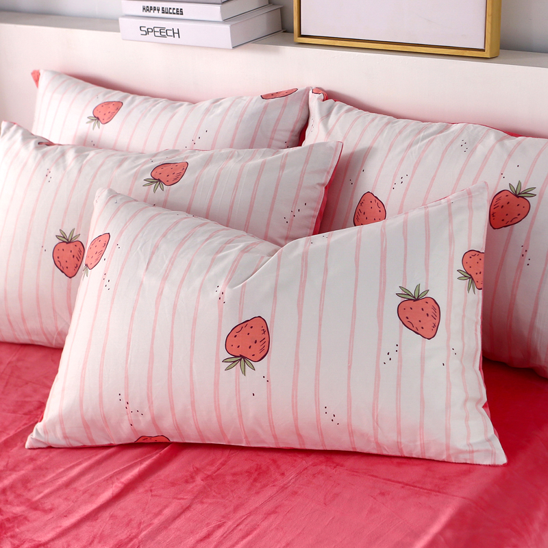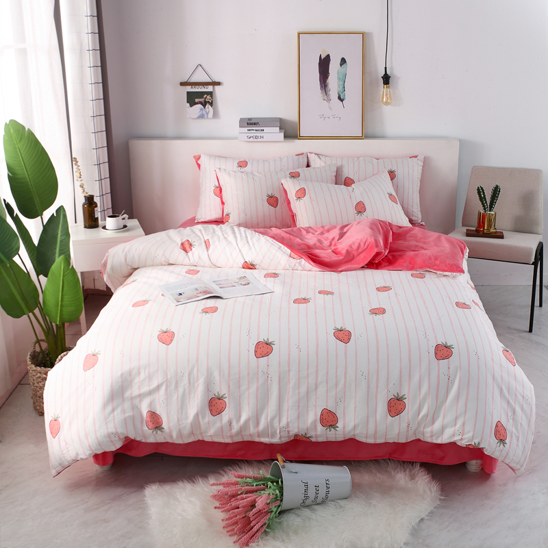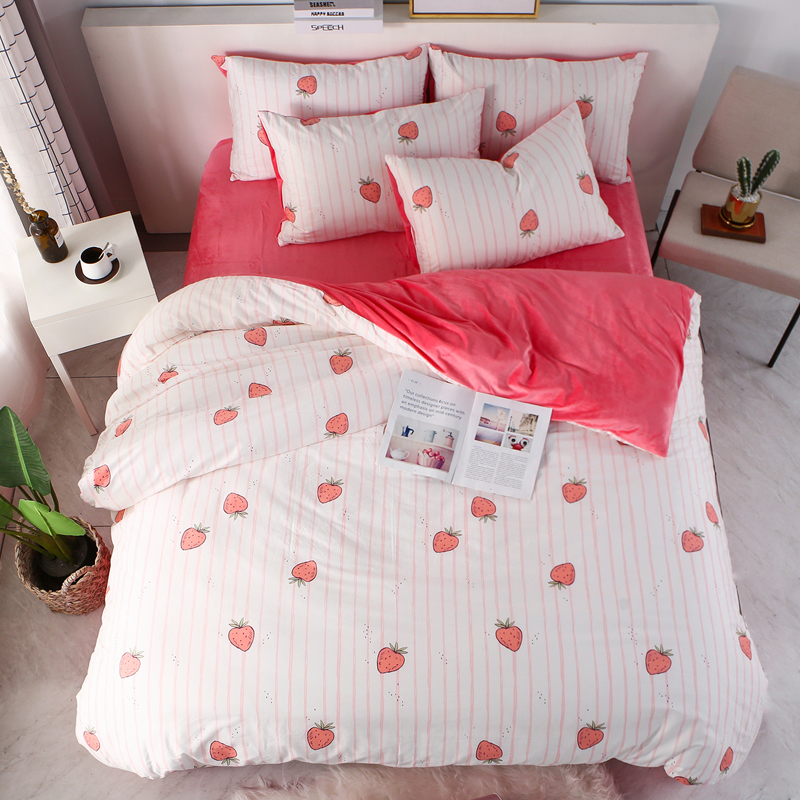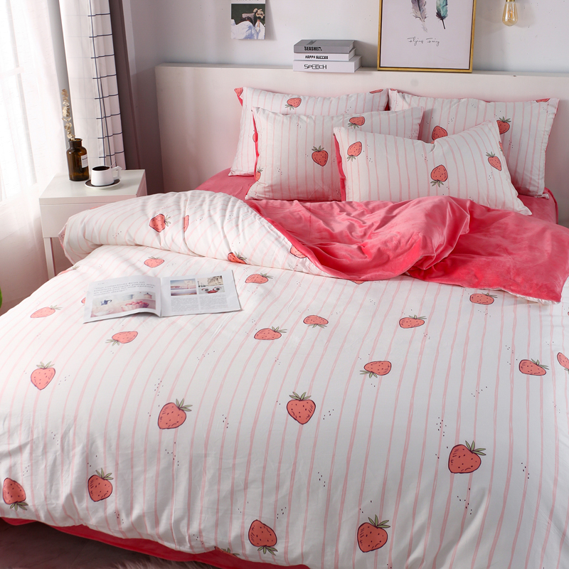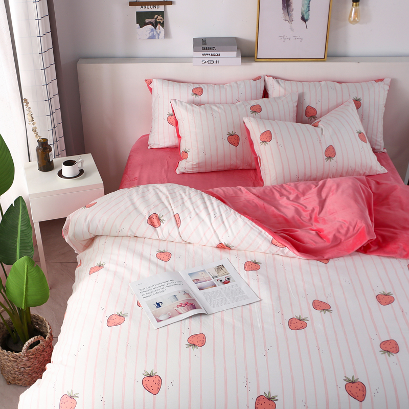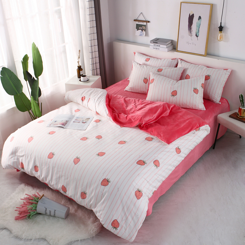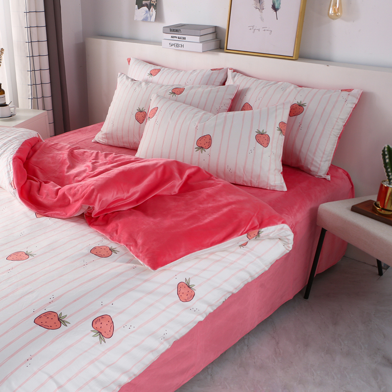 商品名称:一米阳光 2019新款A棉B纯色绒四件套 草莓
