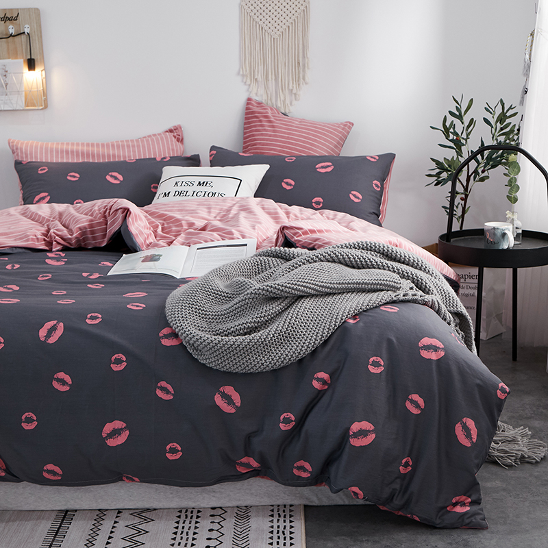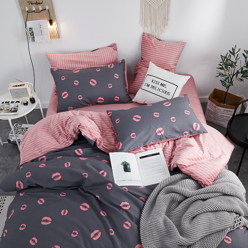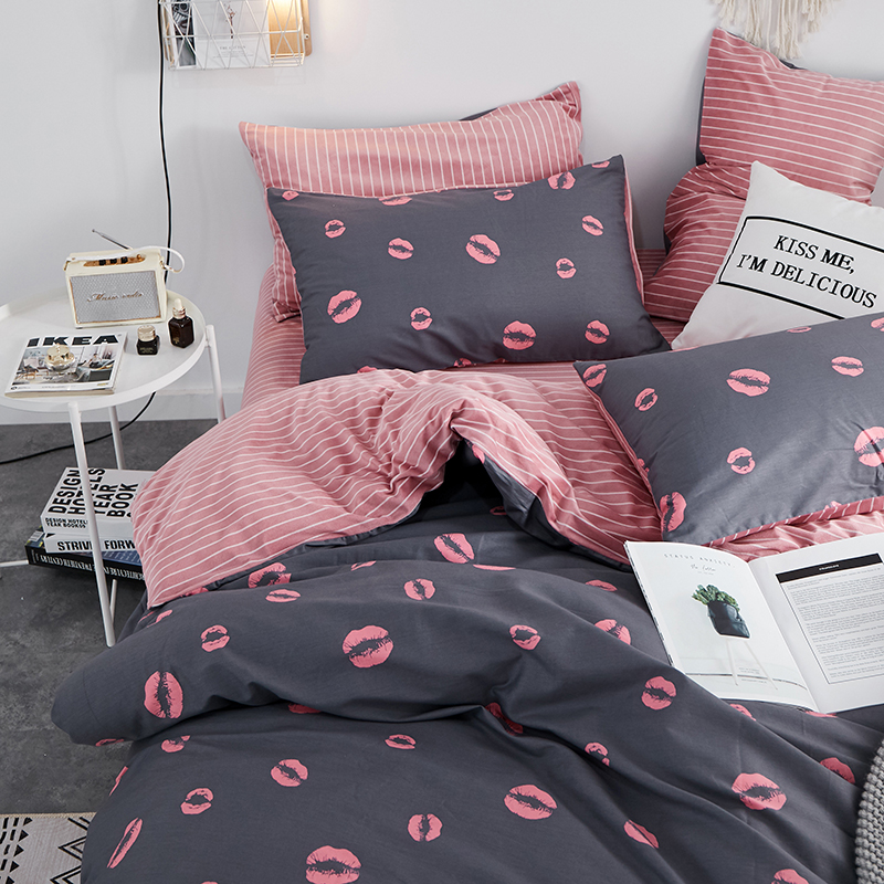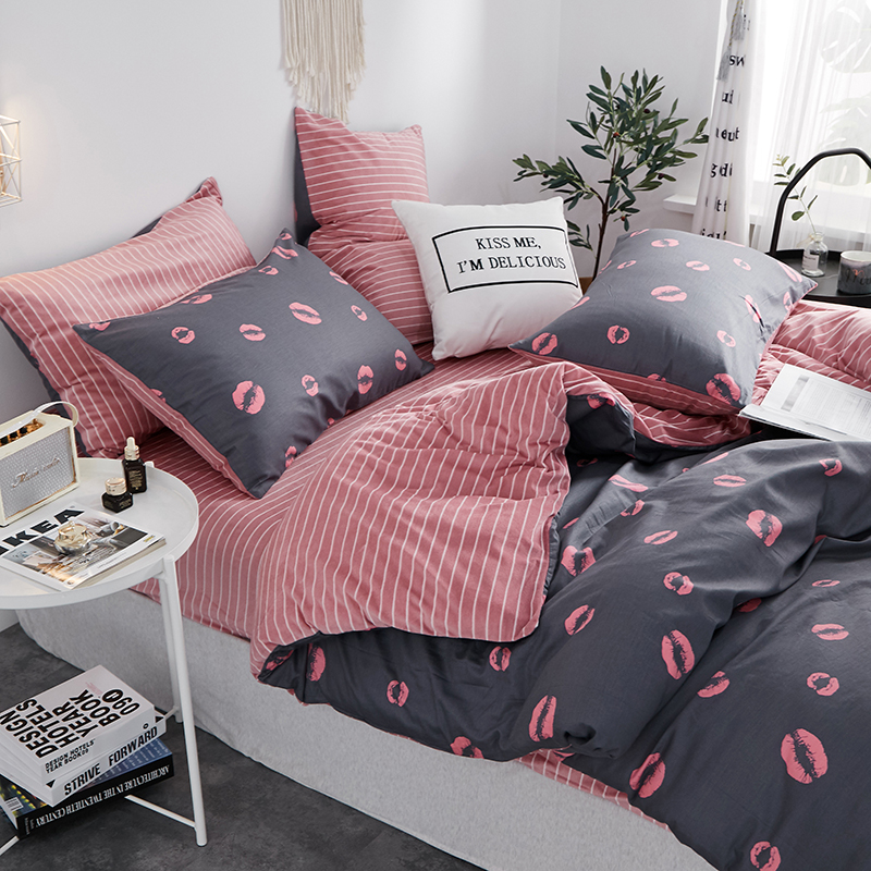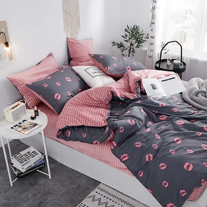 (总)一米阳光 2024新款小清新AB版全棉四件套,贝尔兰,饼干熊,粉黛,简约,卡通甜甜圈,萌萌宠,沁园-灰,沁园-卡其,沁园-紫,水果点点,月半点点