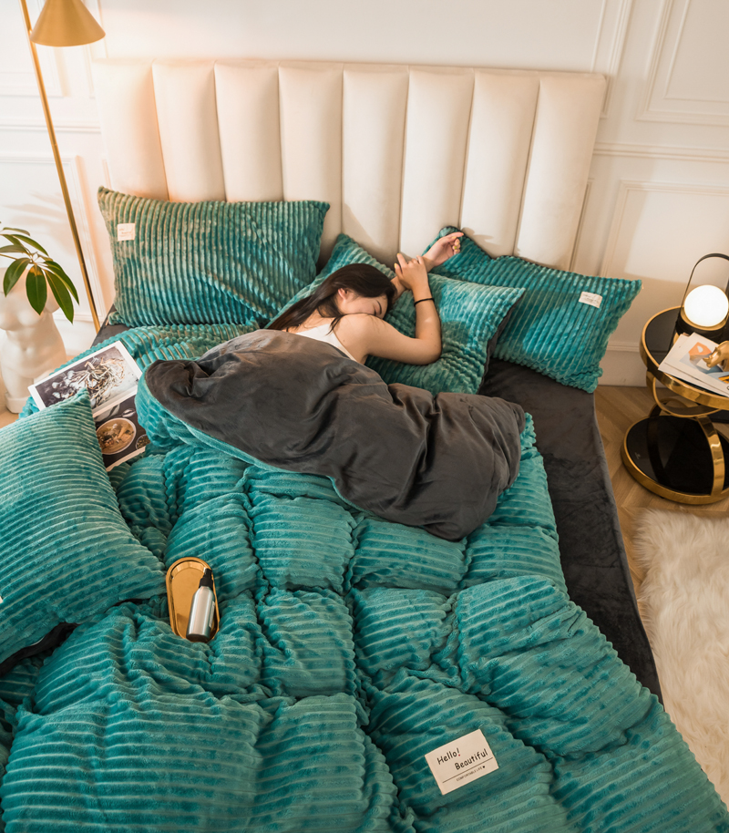 商品名称:澳洲羽 加厚魔法绒水晶绒法莱绒宝宝绒魔幻绒四件套 松石绿