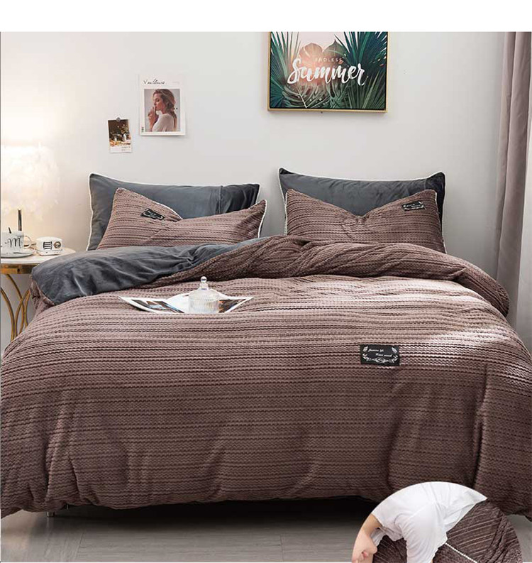 (总)佰亿莱 2024新款高克重雕花牛奶绒轻奢拼角四件套,红棕,鎏金,墨绿,暖粉,叶青,幽蓝