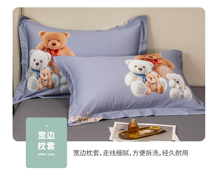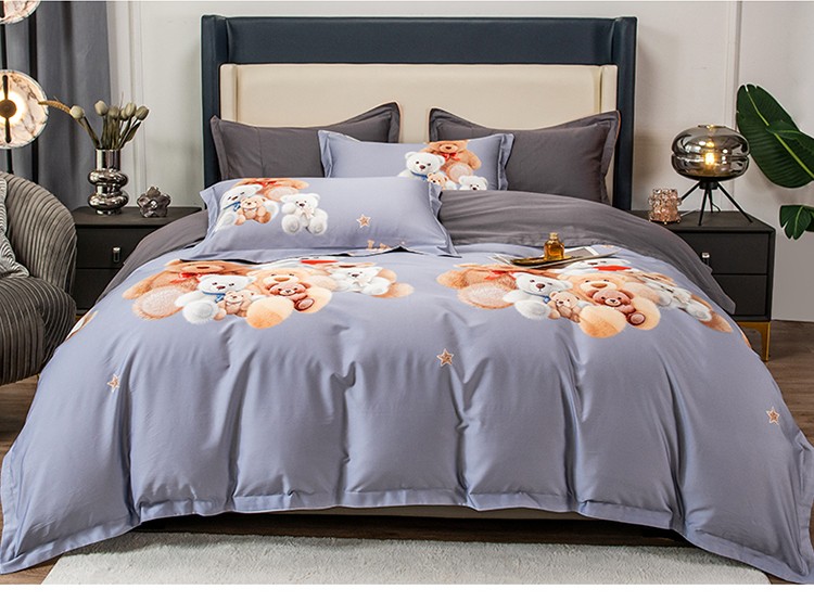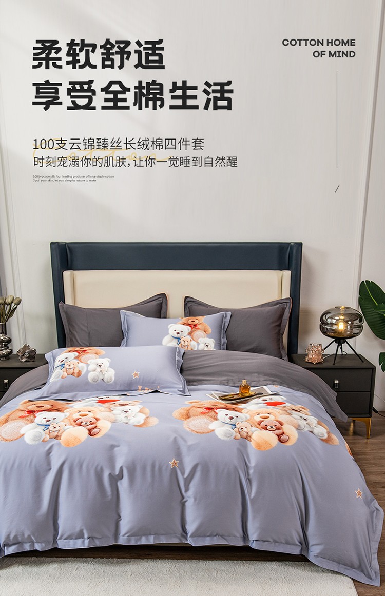 品乐2023新100支云锦臻丝高清数码长绒棉四件套 可爱熊灰