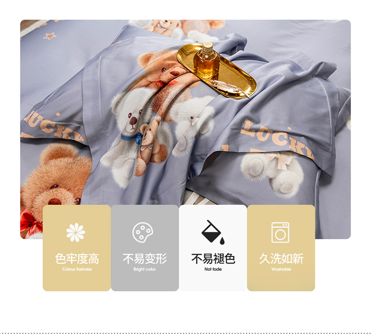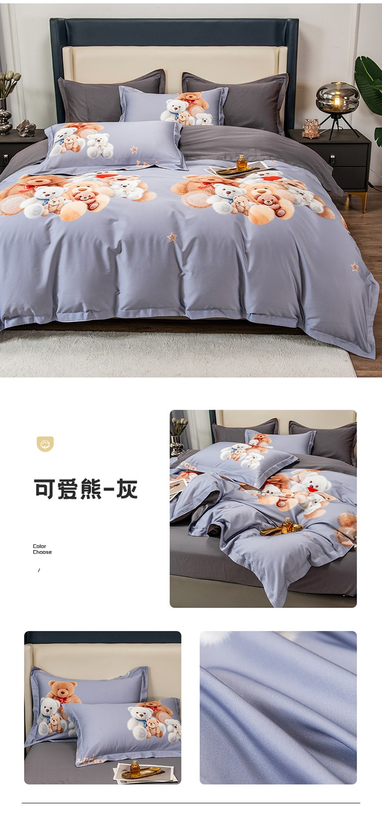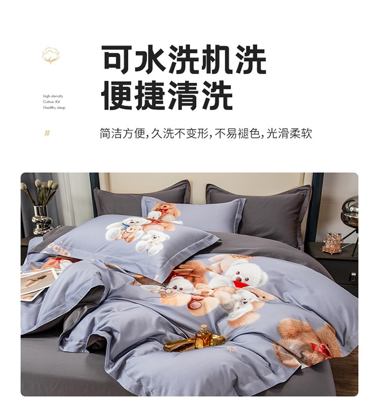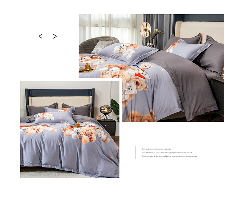 商品名称:品乐2023新100支云锦臻丝高清数码长绒棉四件套 可爱熊灰