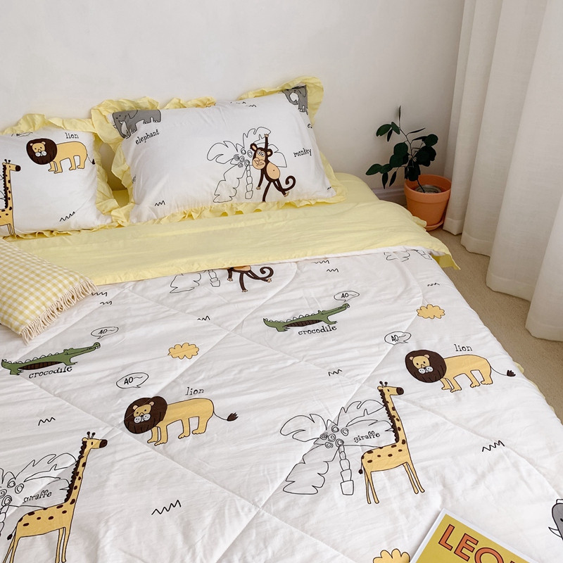 顾里 2020新款ins治愈小清新水洗棉夏被四件套 动物世界