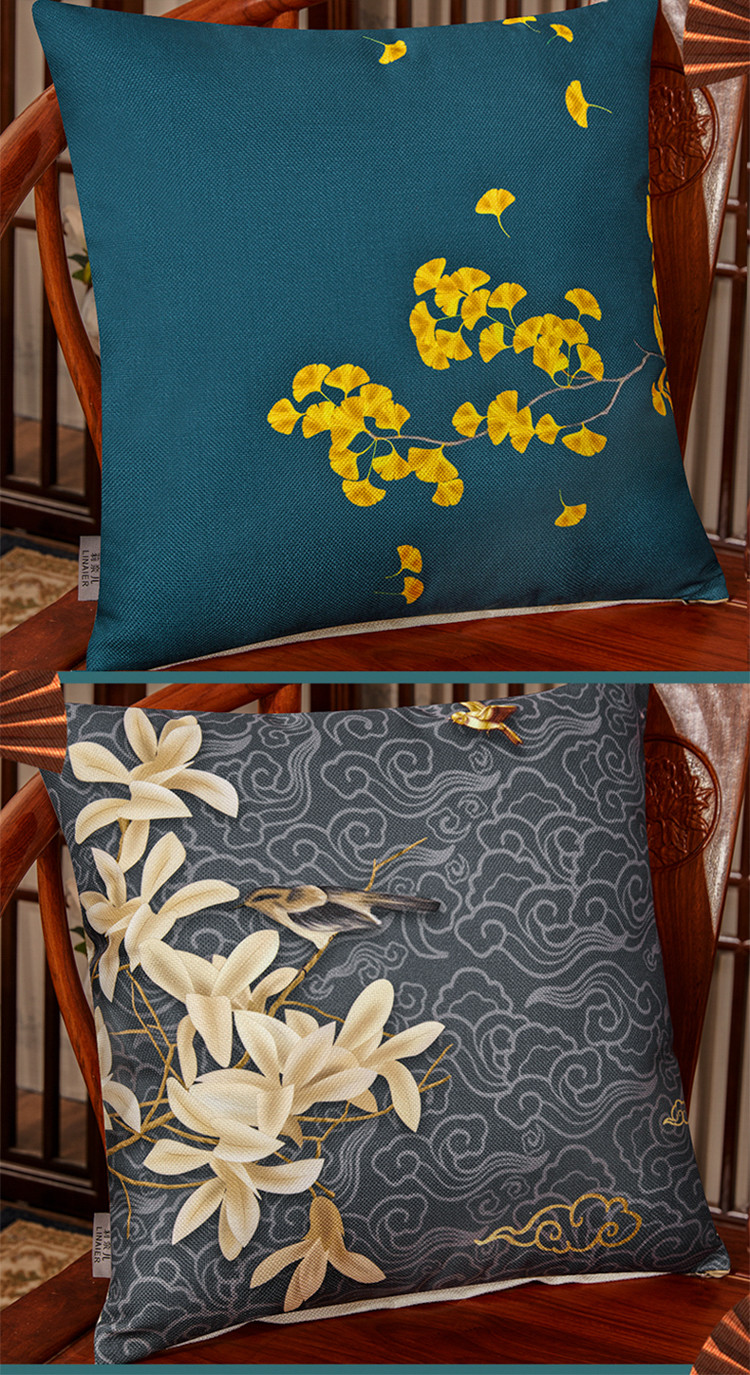 商品名称:北辰 2020新款麻布印花新中式抱枕 鹊上眉梢-红
