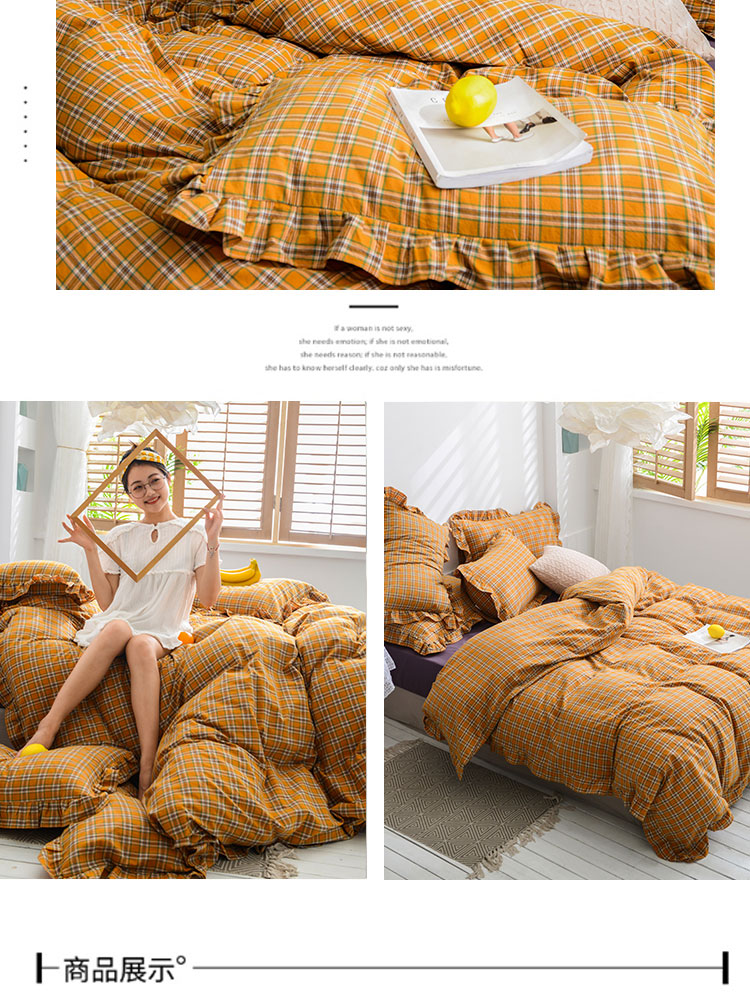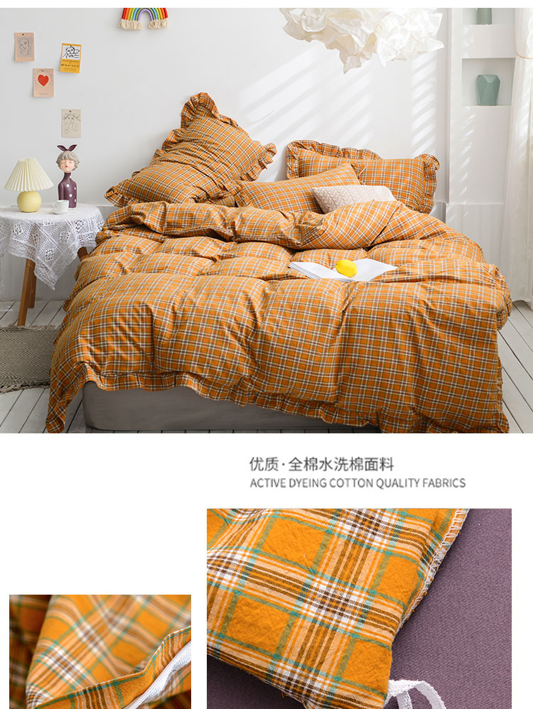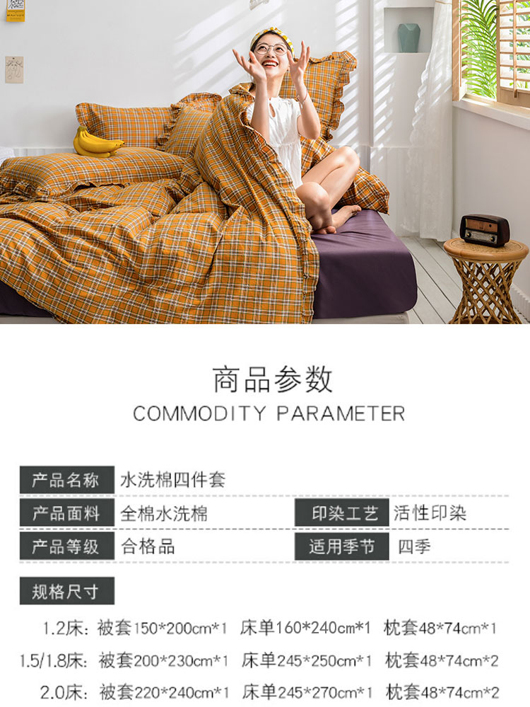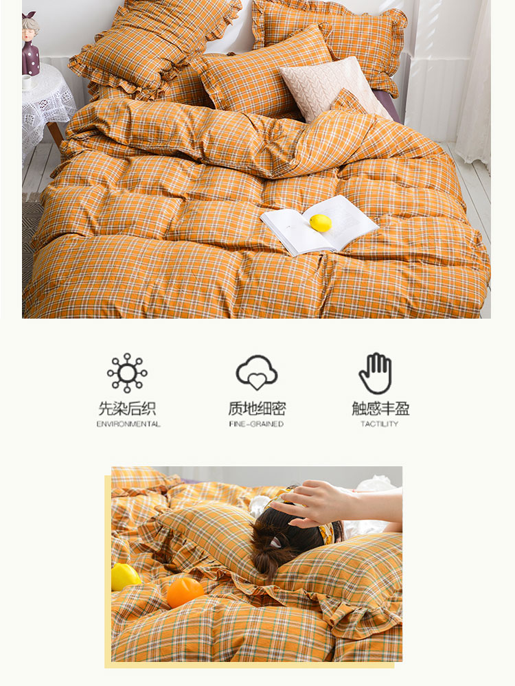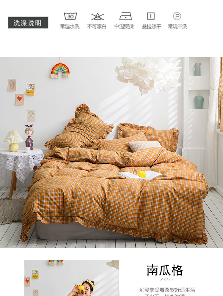 当前位置: 91家纺网 > 商品网购 > 床品套件 > 四件套 > 水洗棉四件套 > 久典家居 2020新款色织水洗棉四件套花边款水果格系列南瓜格