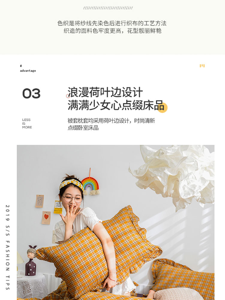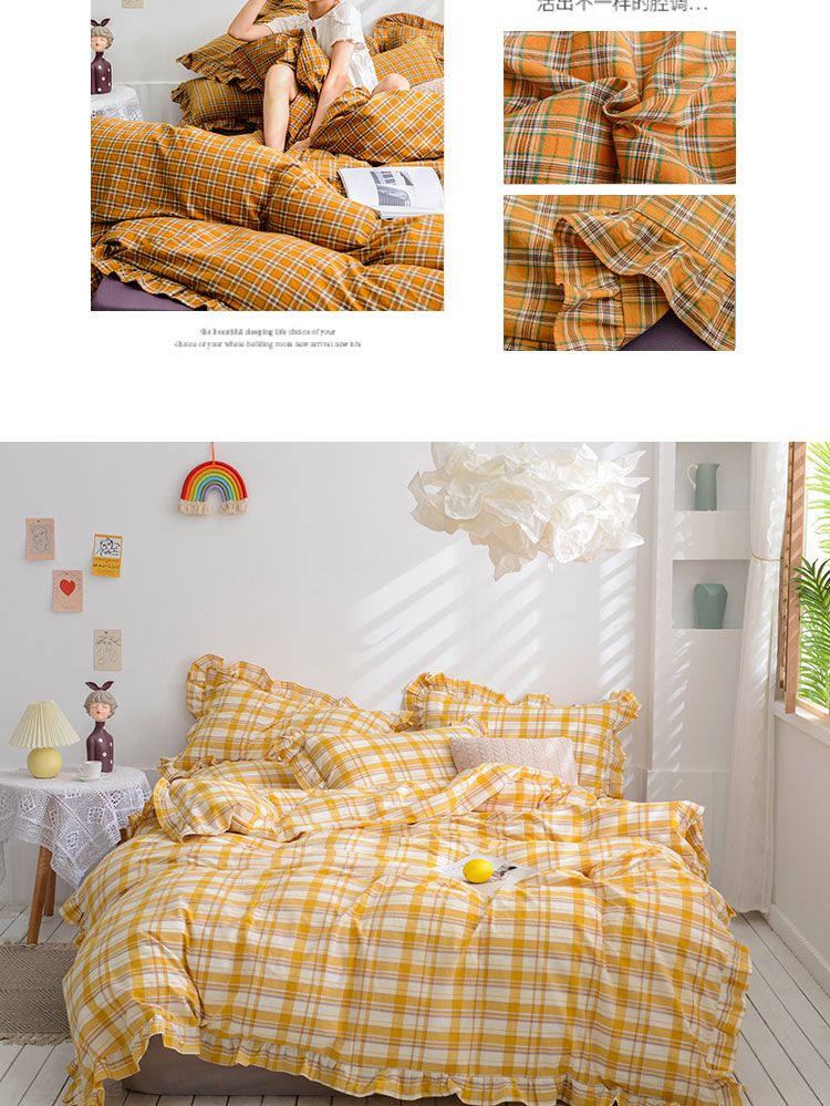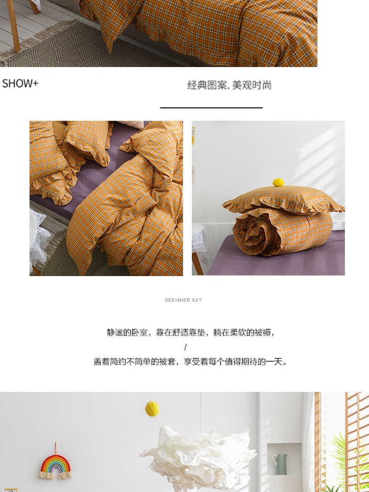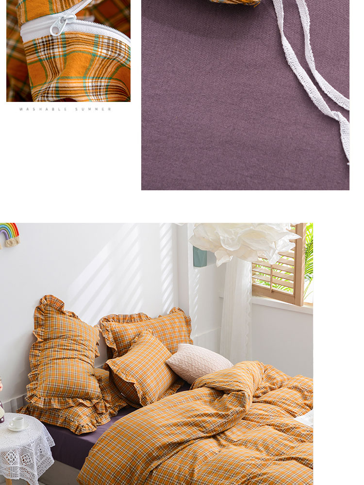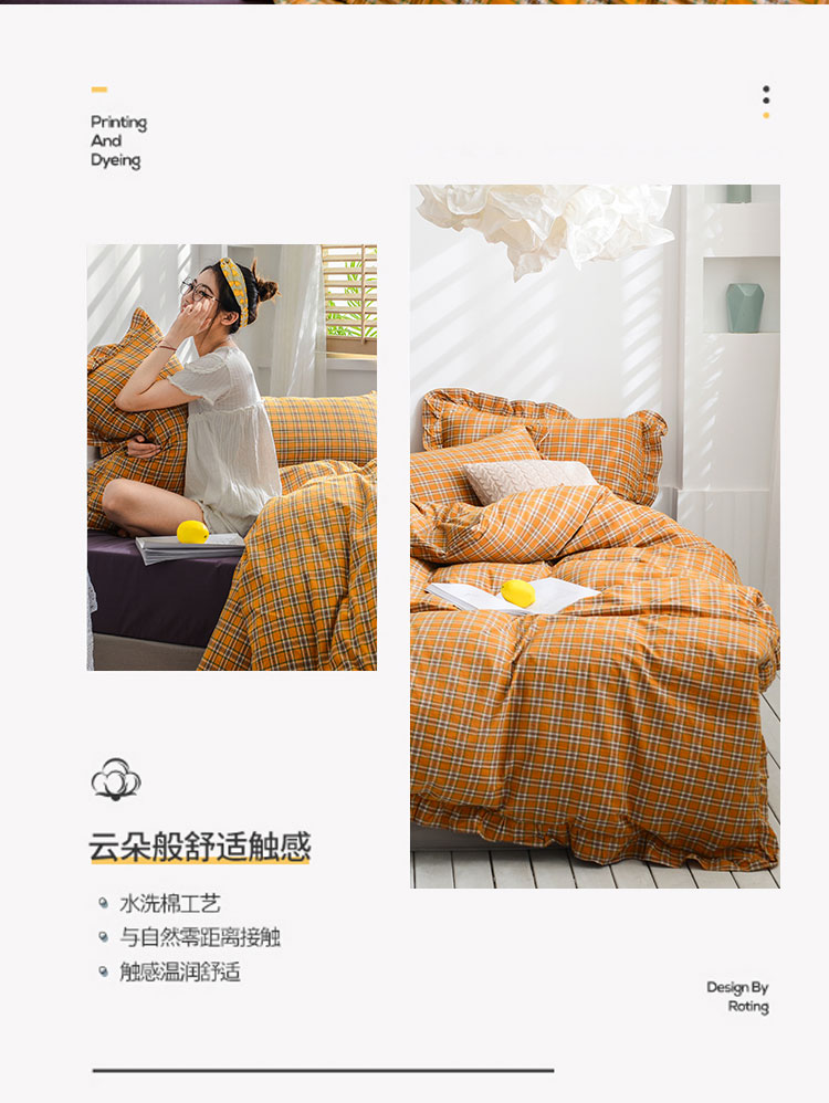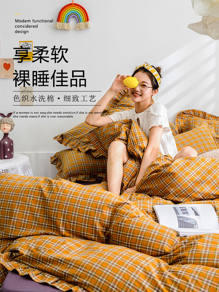 当前位置: 91家纺网 > 商品网购 > 床品套件 > 四件套 > 水洗棉四件套 > 久典家居 2020新款色织水洗棉四件套花边款水果格系列南瓜格