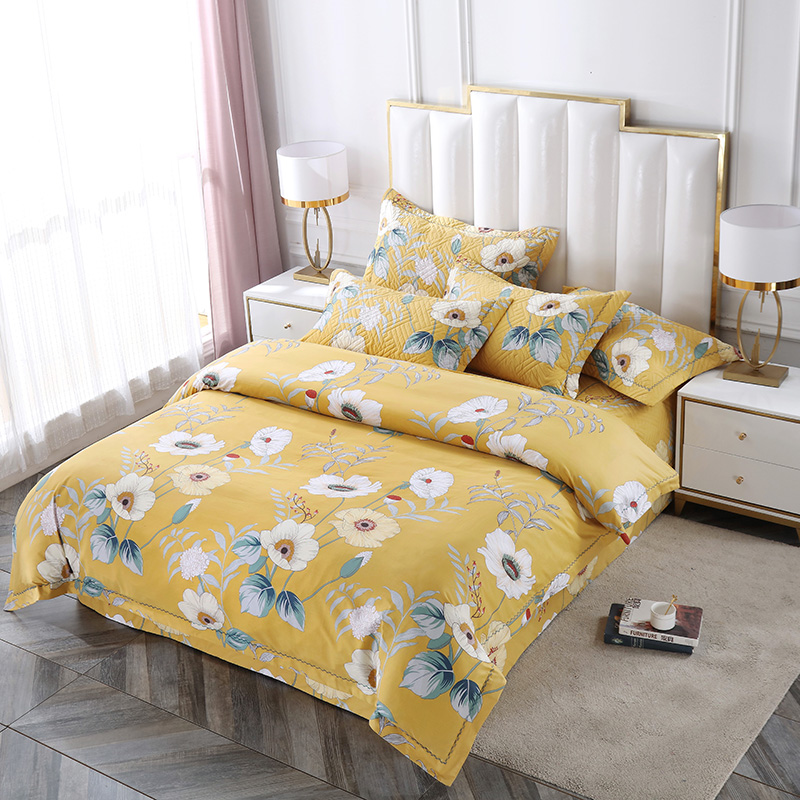商品名称:OL 2021新款13372全棉床盖夹棉活性印染单被套 麦田印画