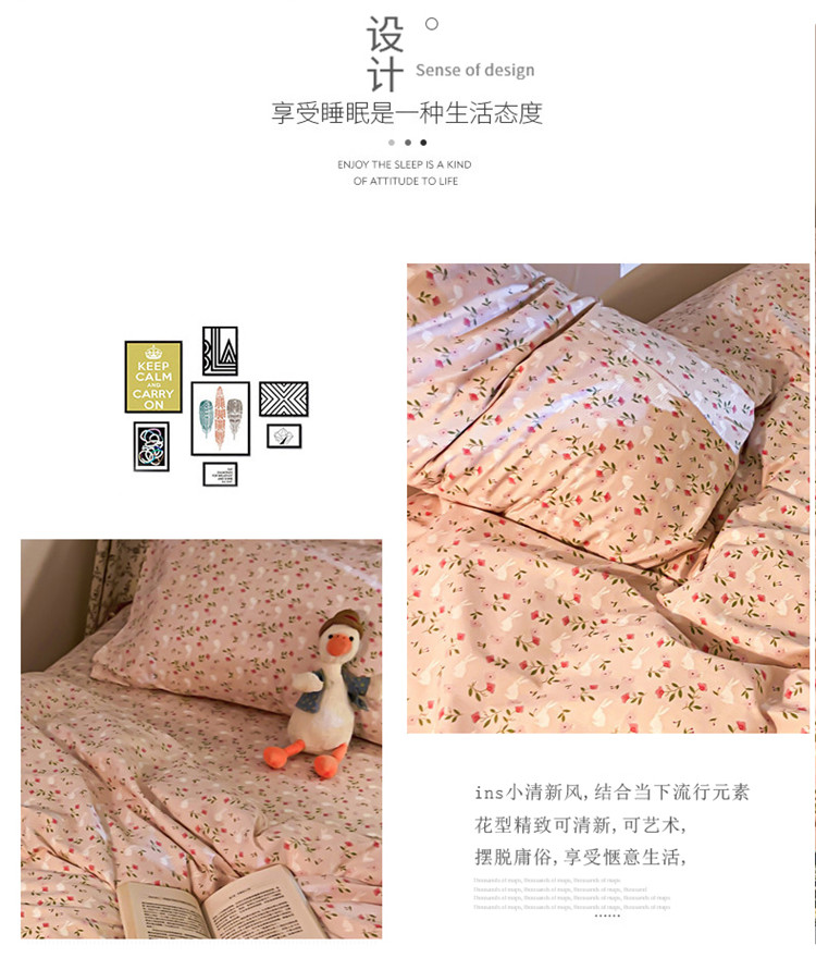 当前位置: 91家纺网 > 商品网购 > 床品套件 > 四件套 > 全棉普通四件套 > 感遇家纺 2020新款全棉小清新卡通四件套新花色 花间小兔