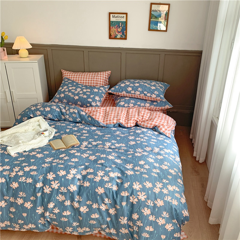 (总)时年 2022新款全棉水洗棉四件套嵌绳款,爱丽丝蓝(浅蓝),克莱因蓝(深蓝)