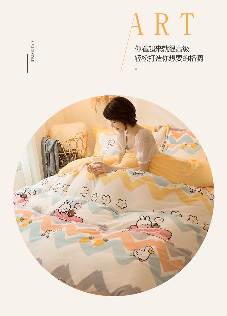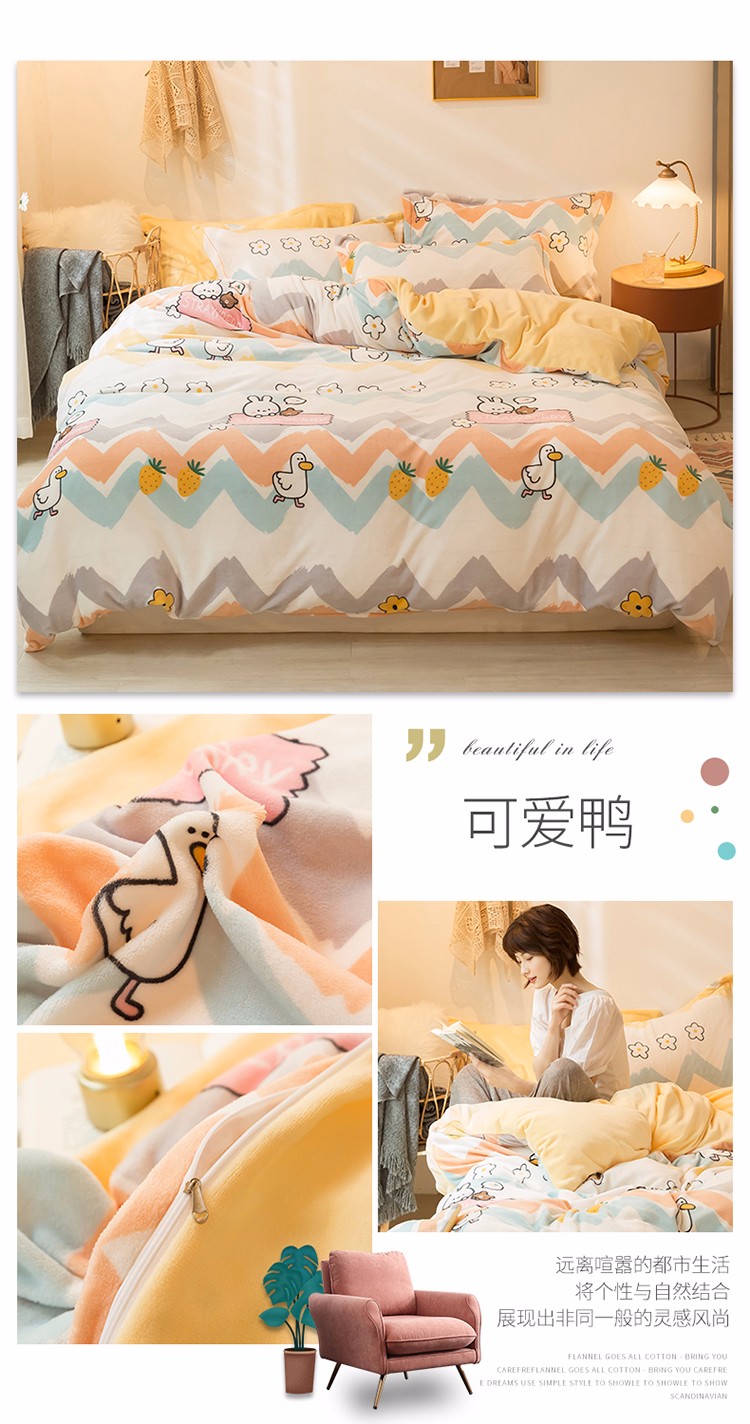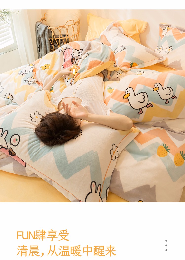 商品名称:卡巴伦 2023新款牛奶绒印花工艺款四件套 可爱鸭