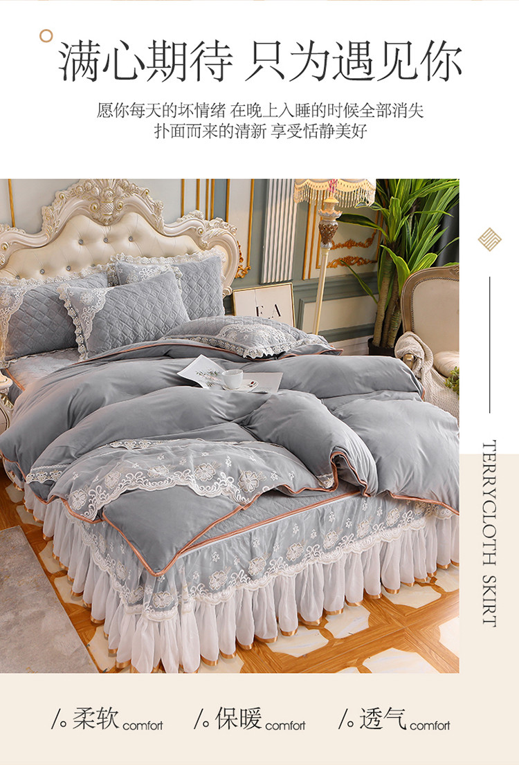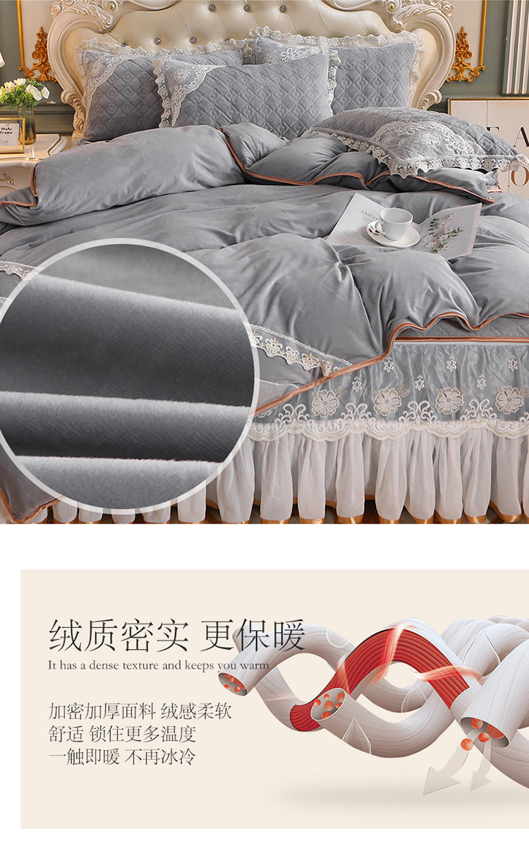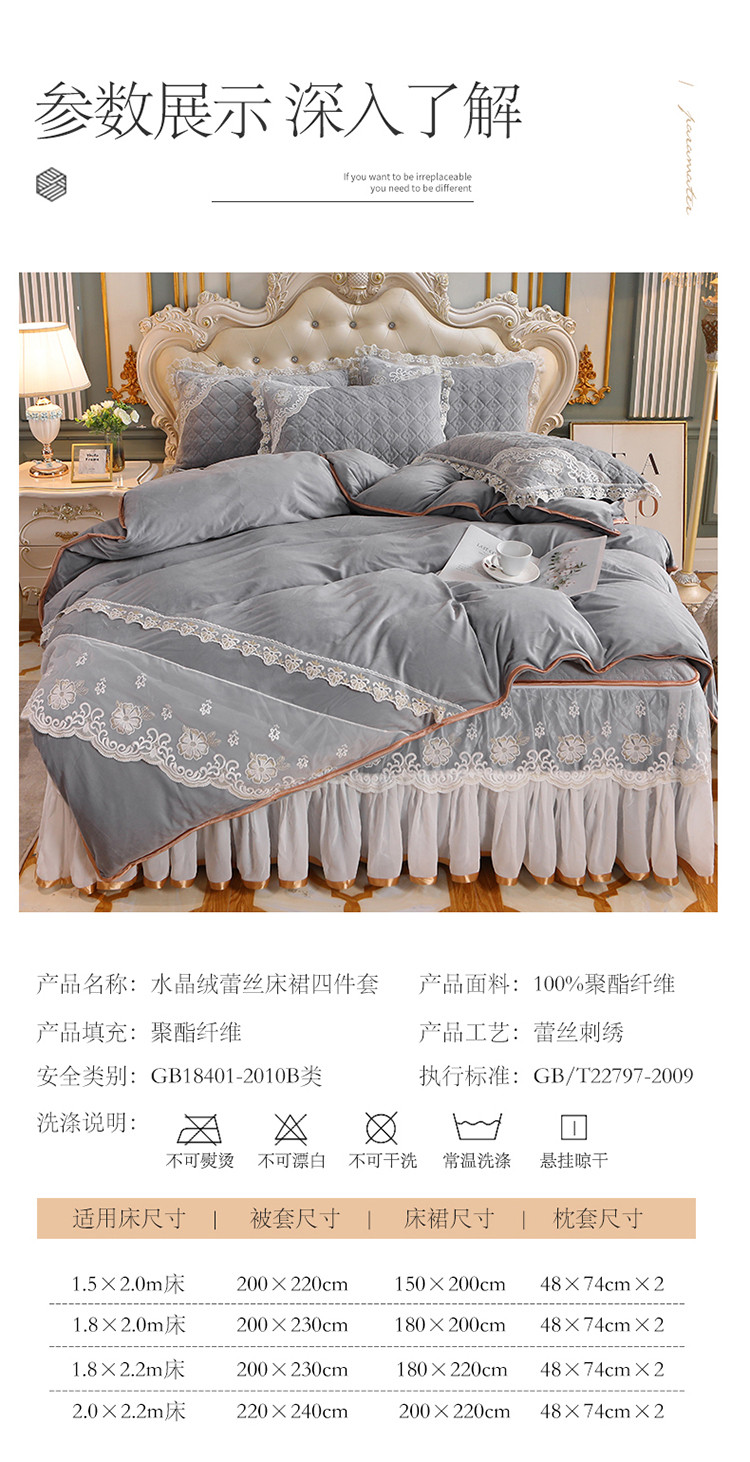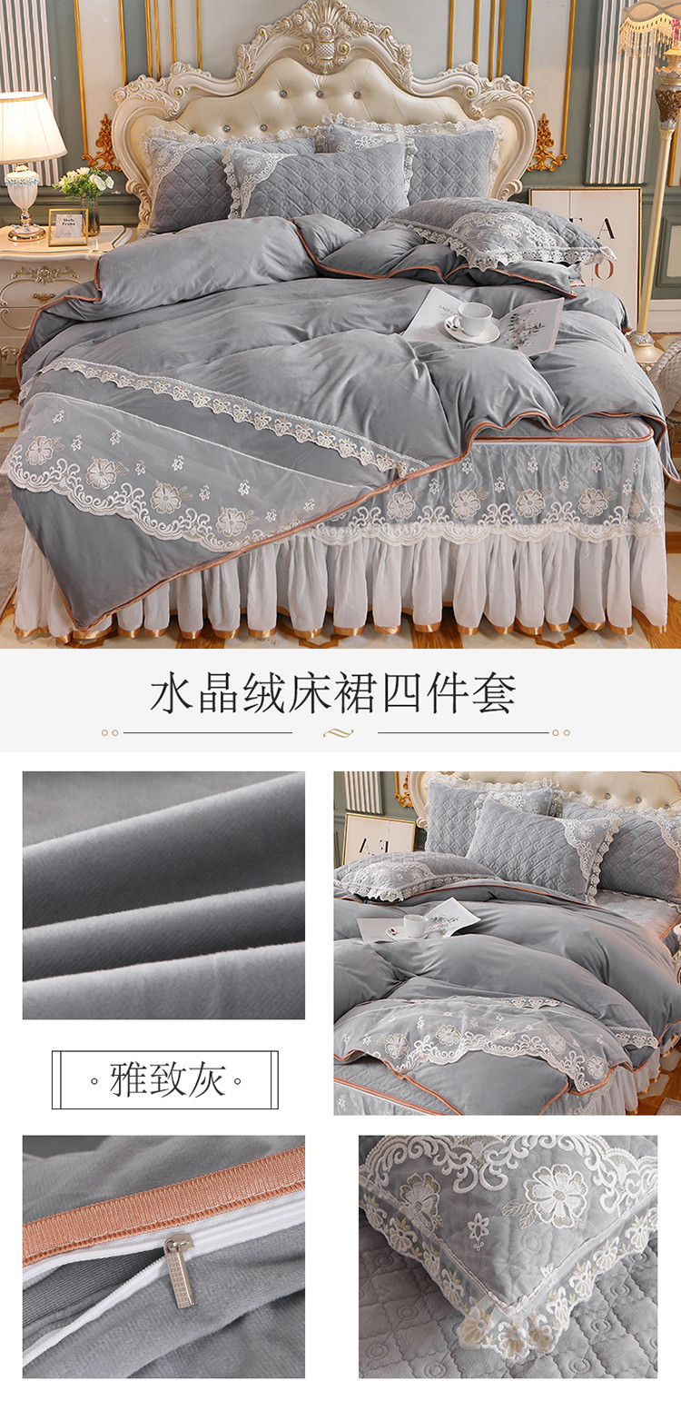商品名称:网红馆 2025新款水晶绒蕾丝床裙四件套 雅致灰