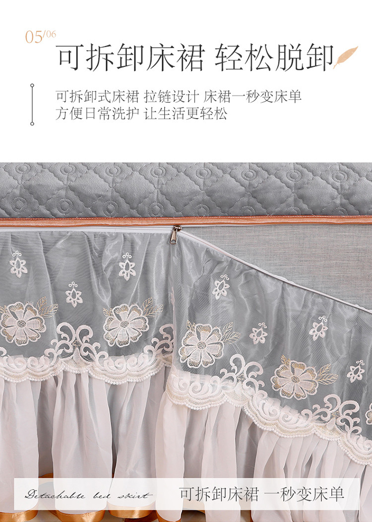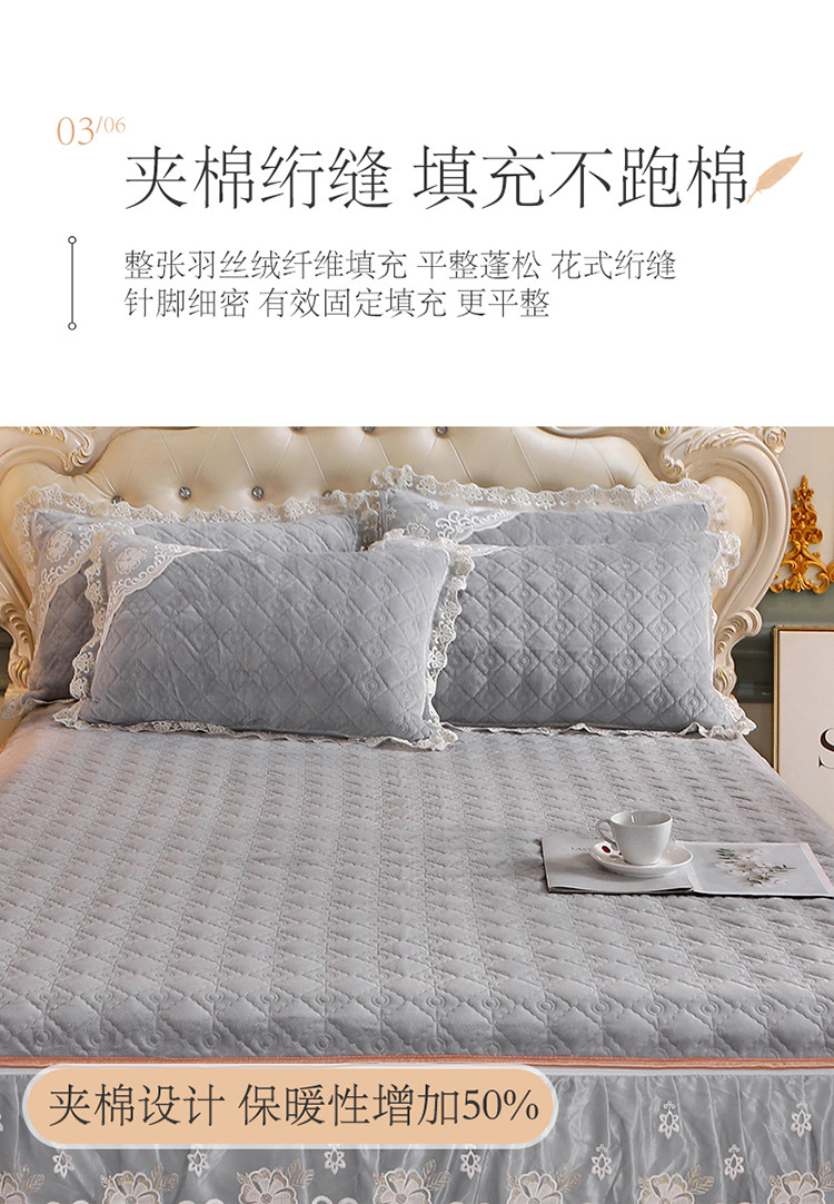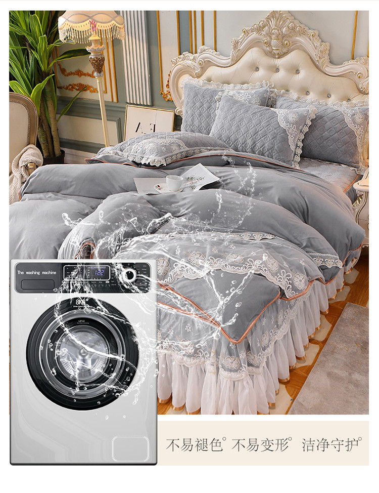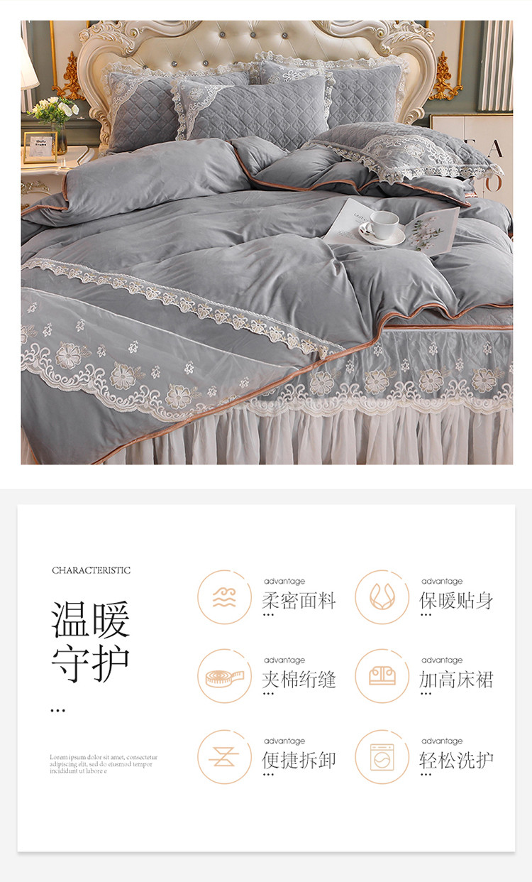商品名称:网红馆 2025新款水晶绒蕾丝床裙四件套 雅致灰