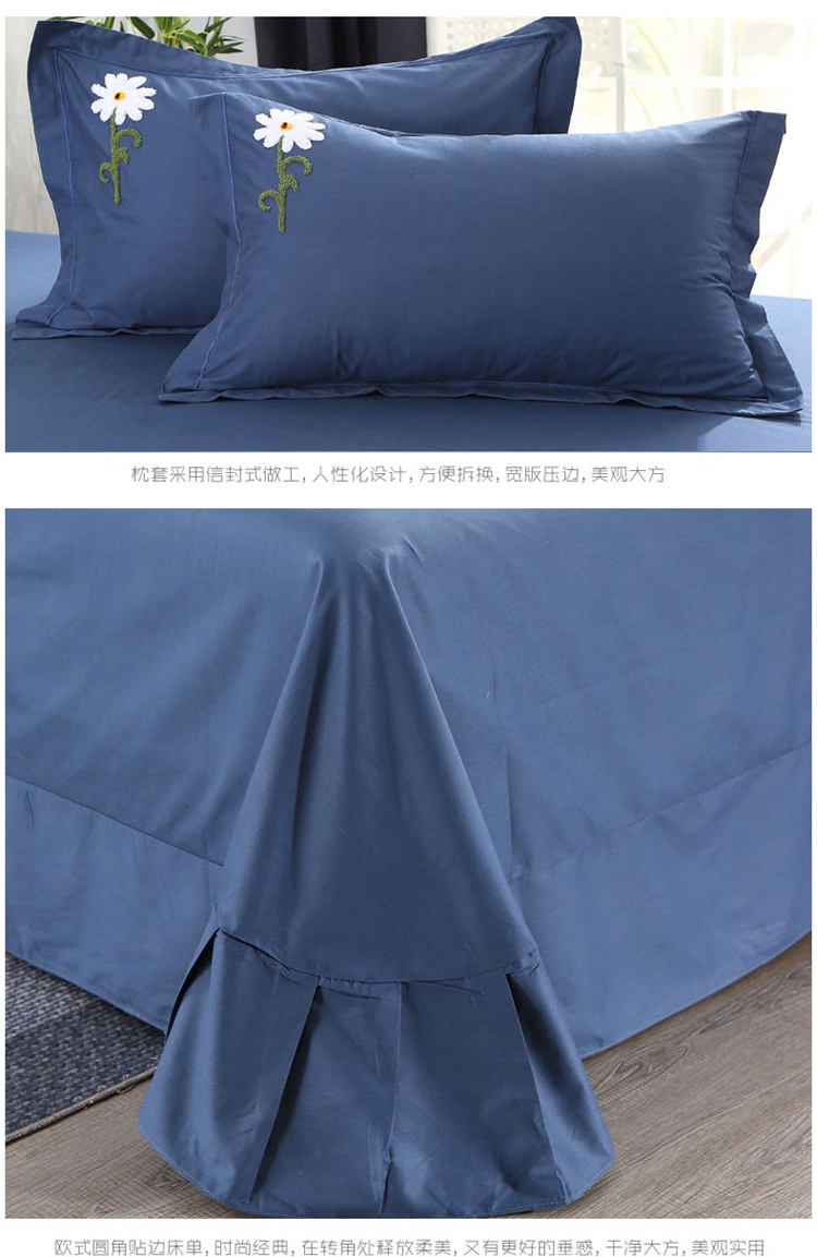 2021新款全棉13372毛巾绣纯棉刺绣花四件套夏花绽放藏青