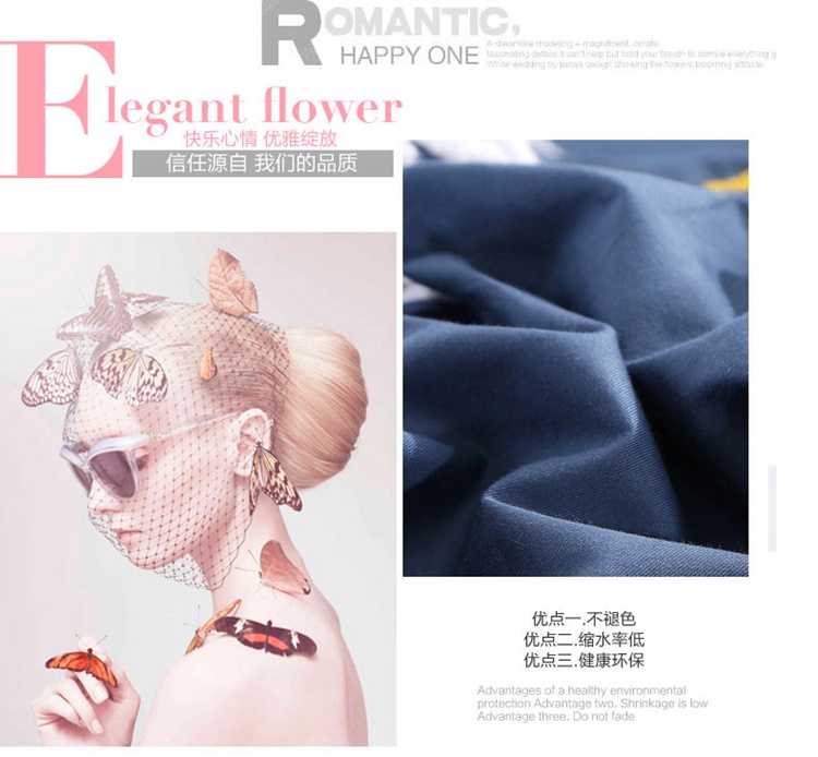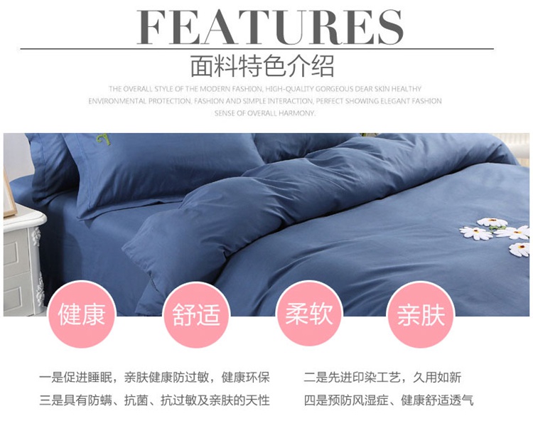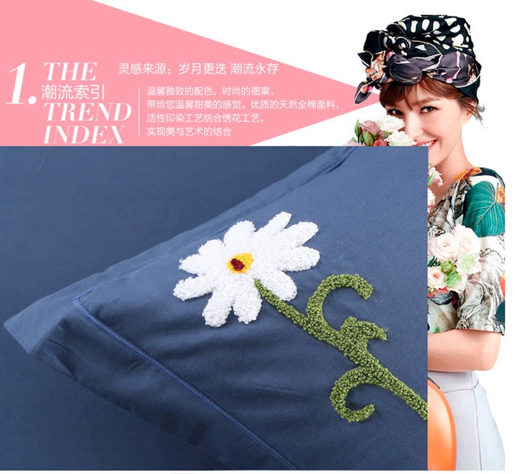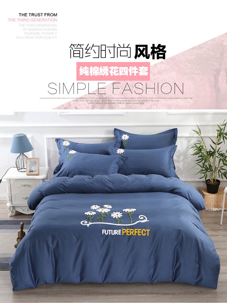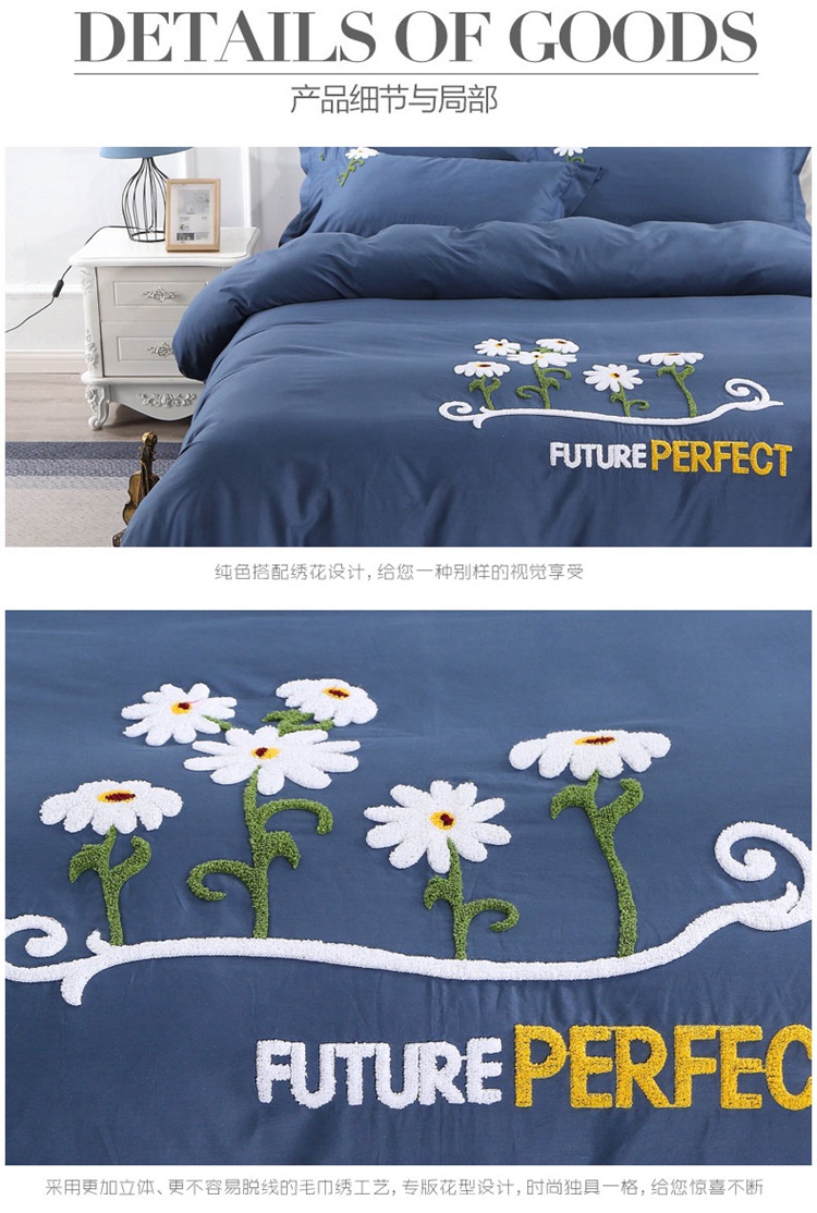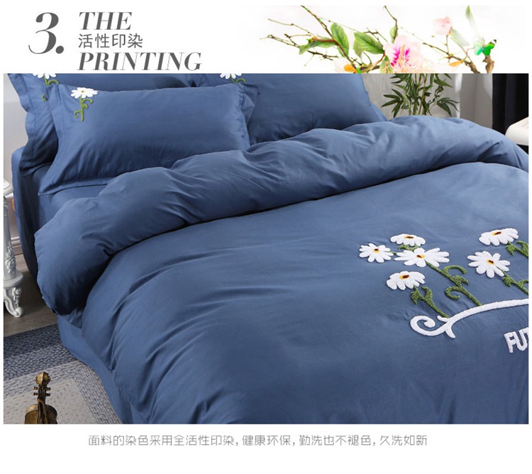 商品名称:2021新款全棉13372毛巾绣纯棉刺绣花四件套夏花绽放藏青