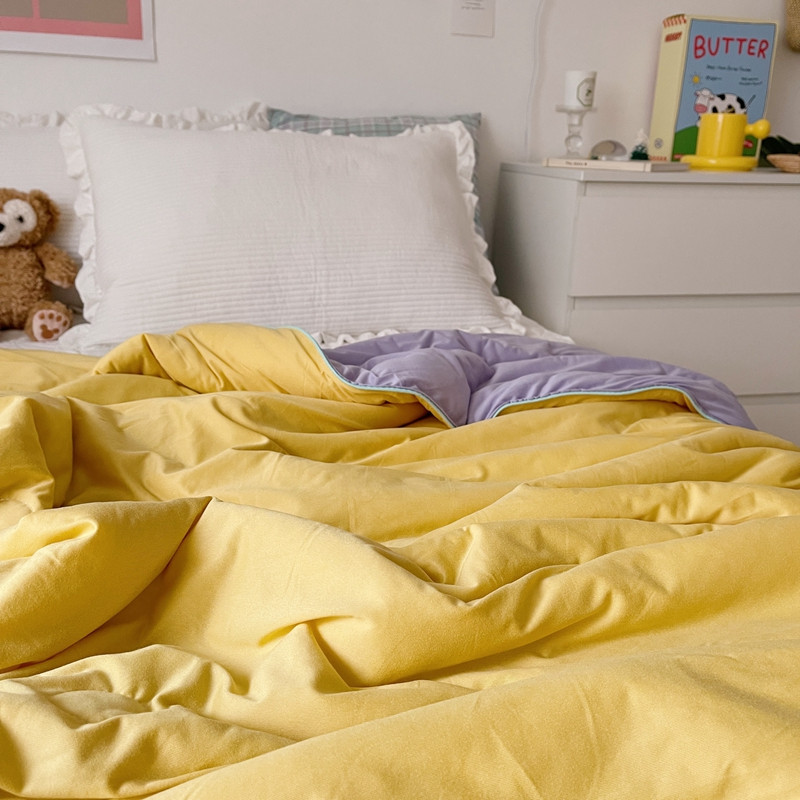星期八 2021新款马卡龙大豆针织棉夏被 黄-紫