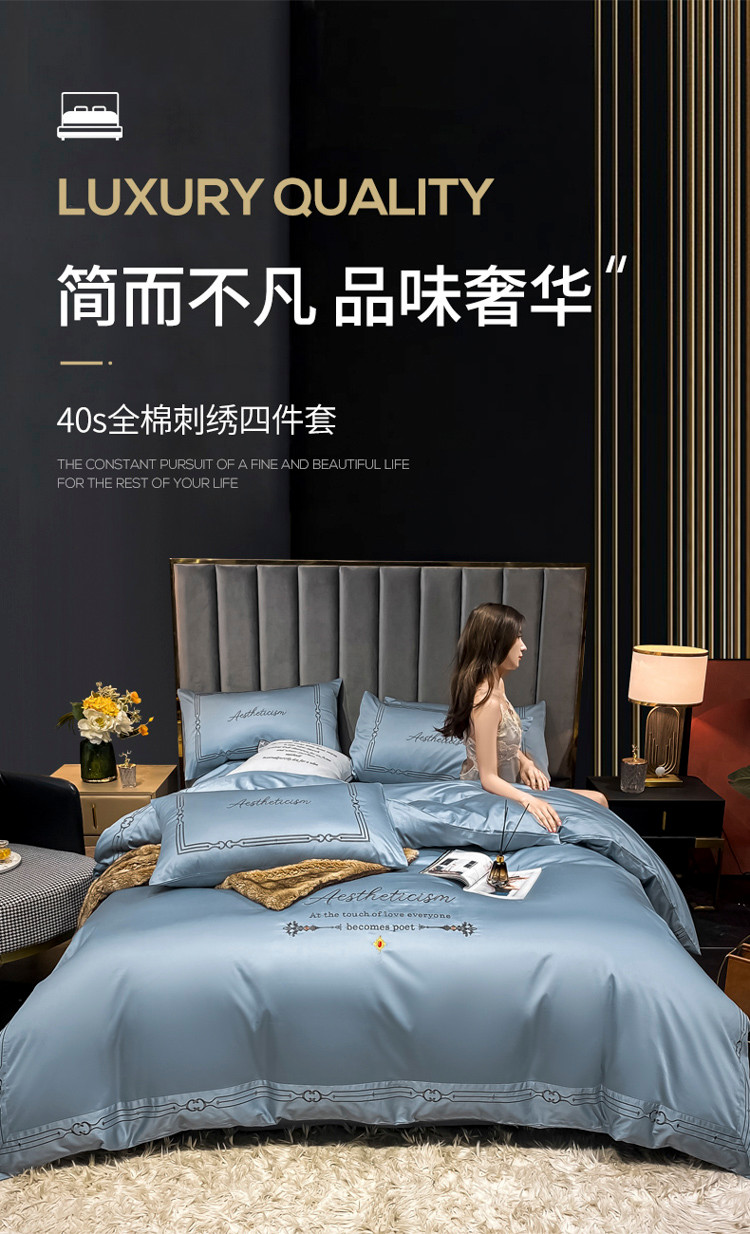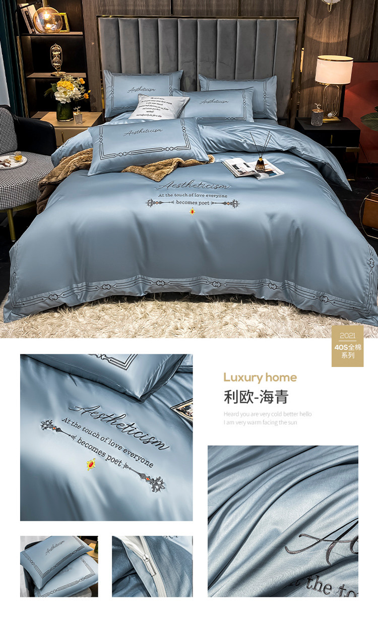 ab家纺 2021新款40s全棉四件套-利欧 海青
