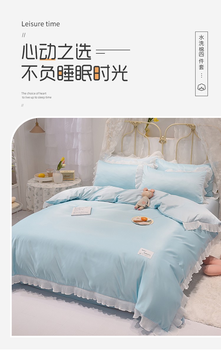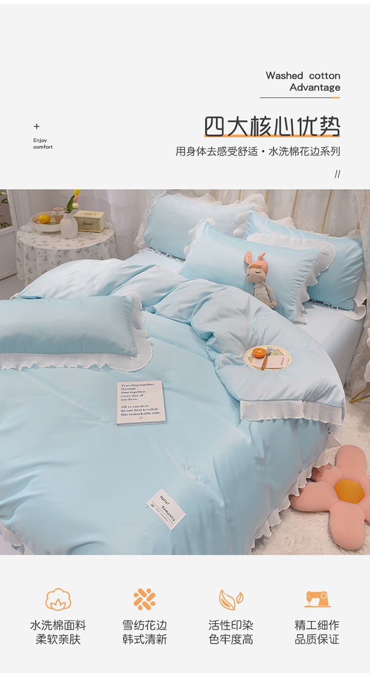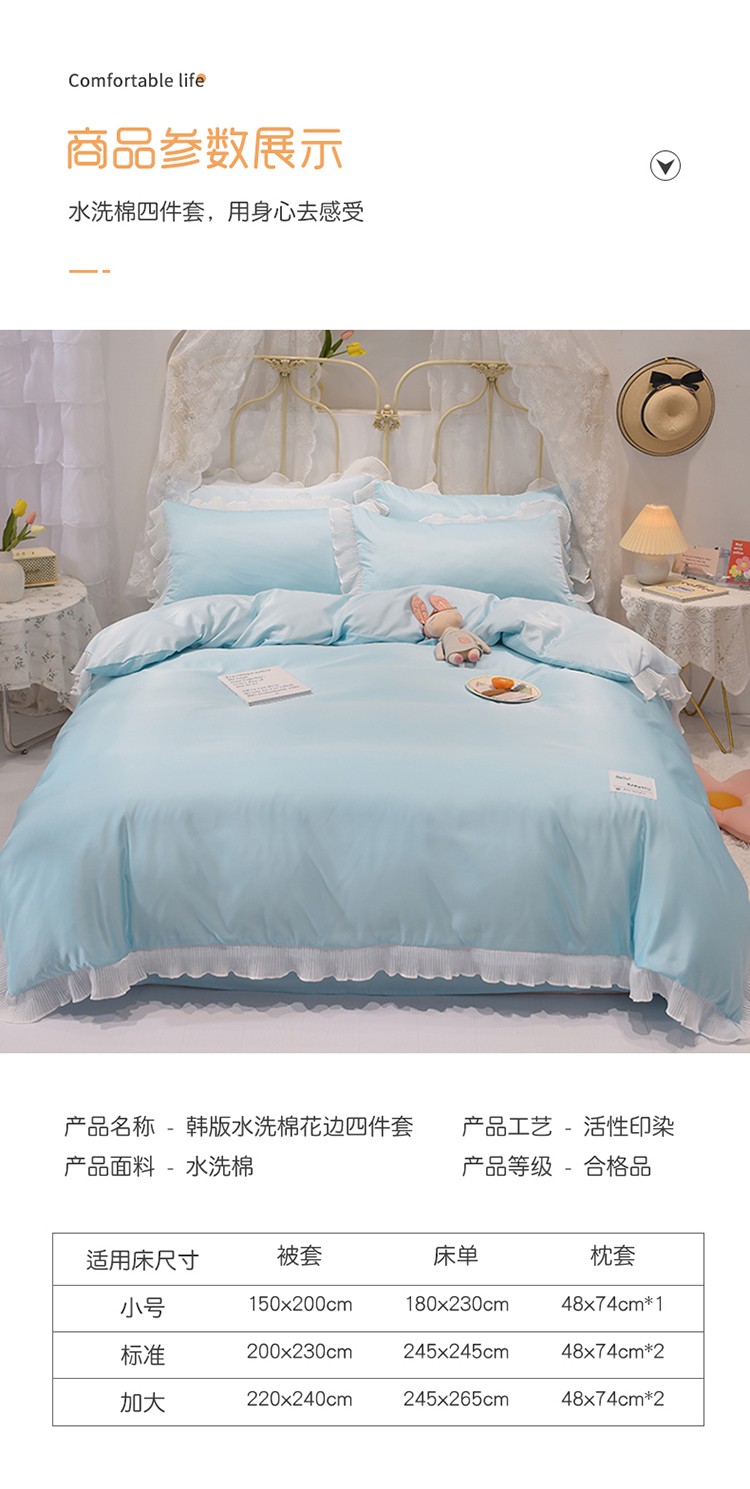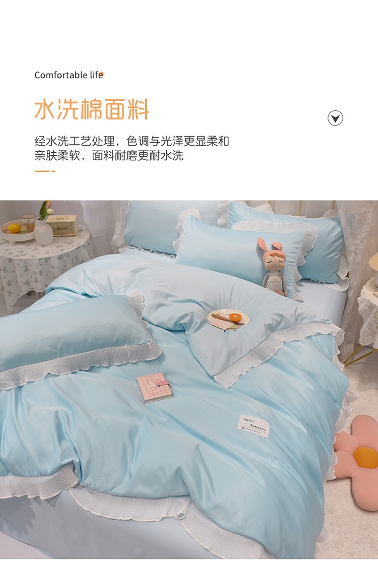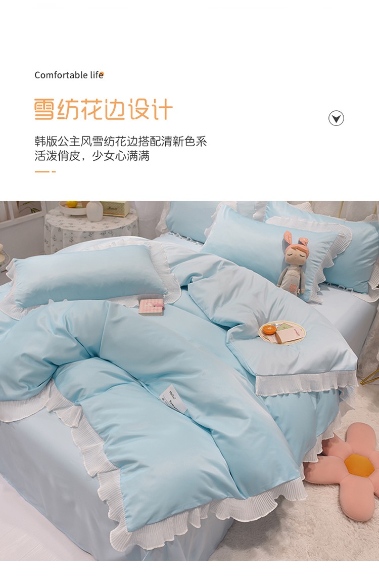 商品名称:2024新款韩版公主风雪纺花边水洗棉四件套 诗语浅蓝