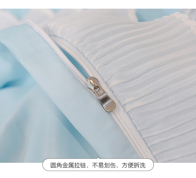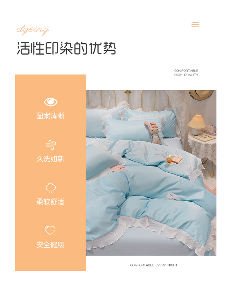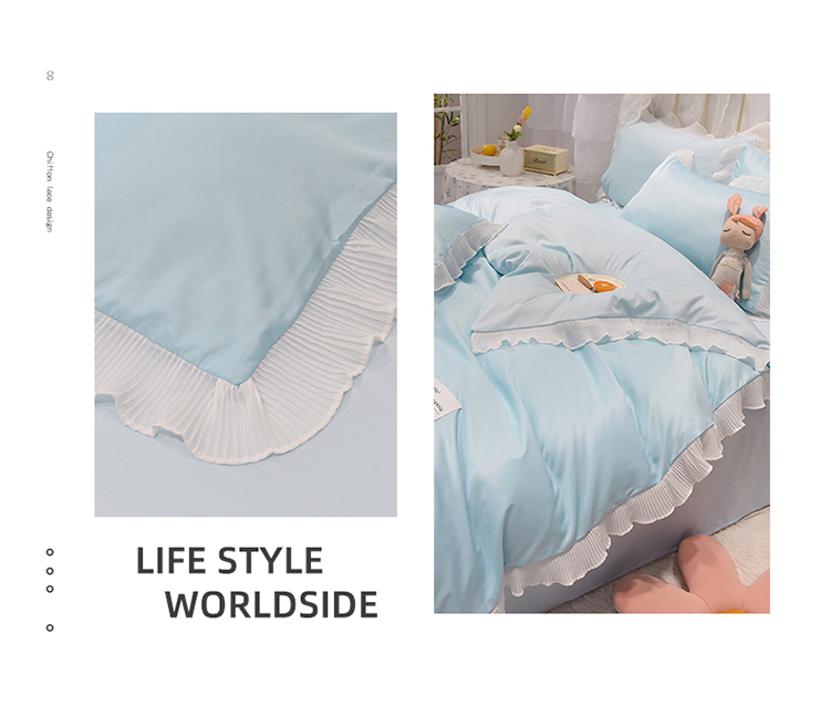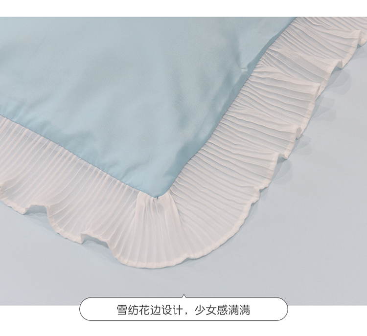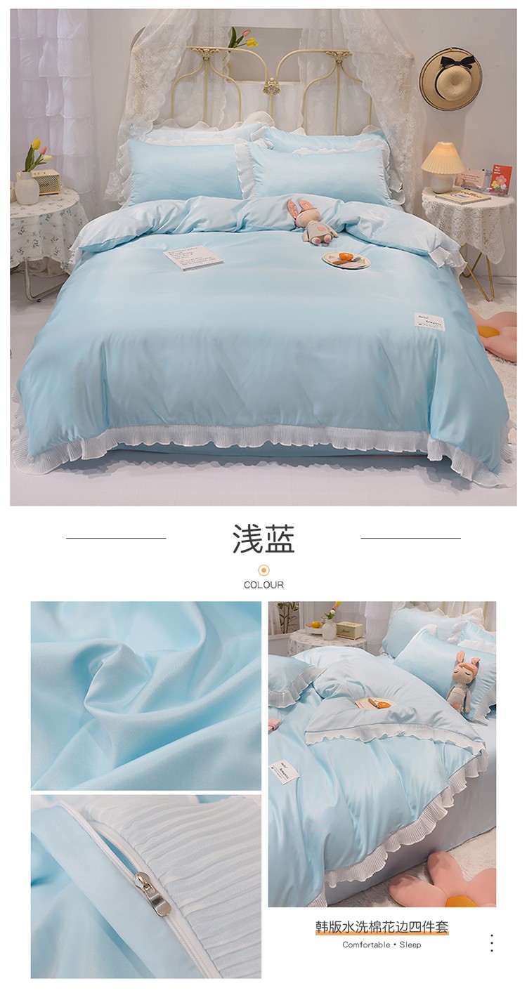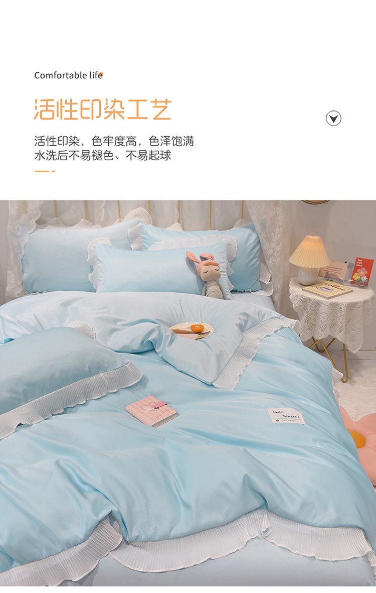 商品名称:2024新款韩版公主风雪纺花边水洗棉四件套 诗语浅蓝