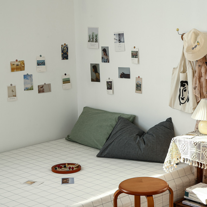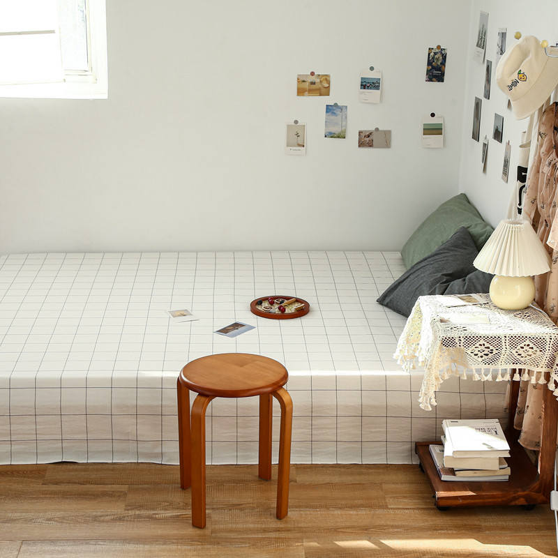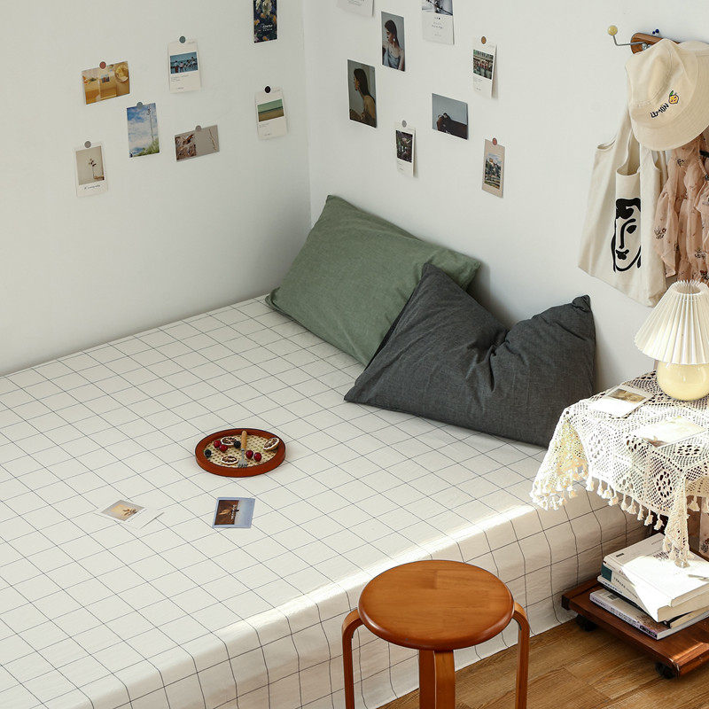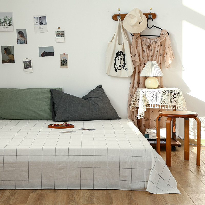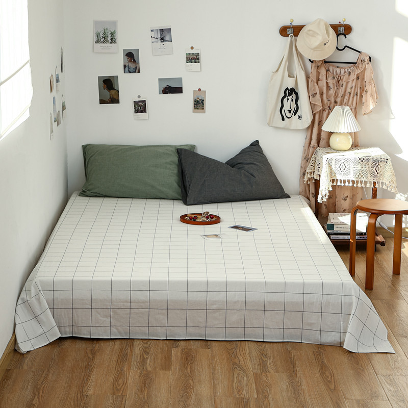 安莱生活 2021新款色织全棉水洗棉单床单 白灰中格