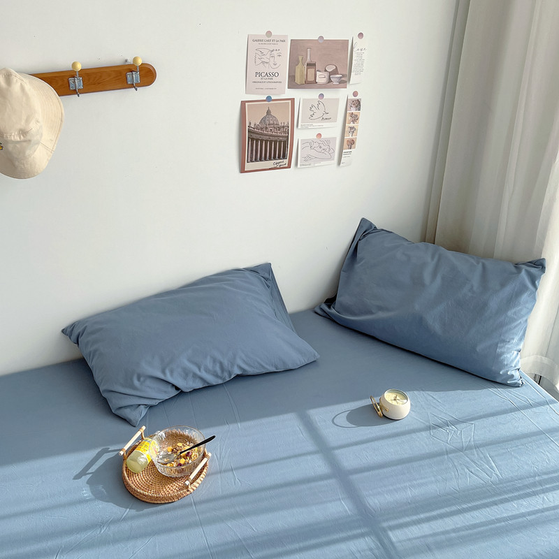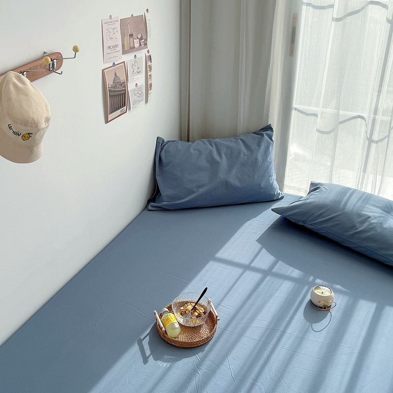 安莱生活 2021新款全棉水洗棉单床笠 雾蓝
