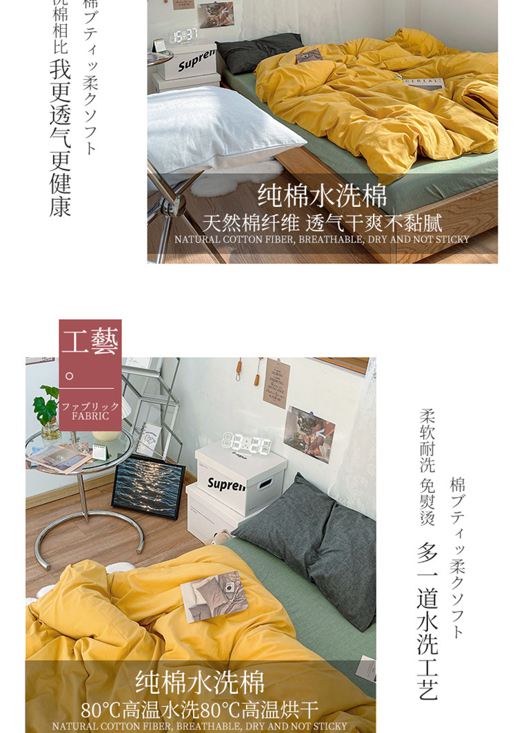 商品名称:(总)安莱生活 新款纯色混搭风全棉水洗棉四件套