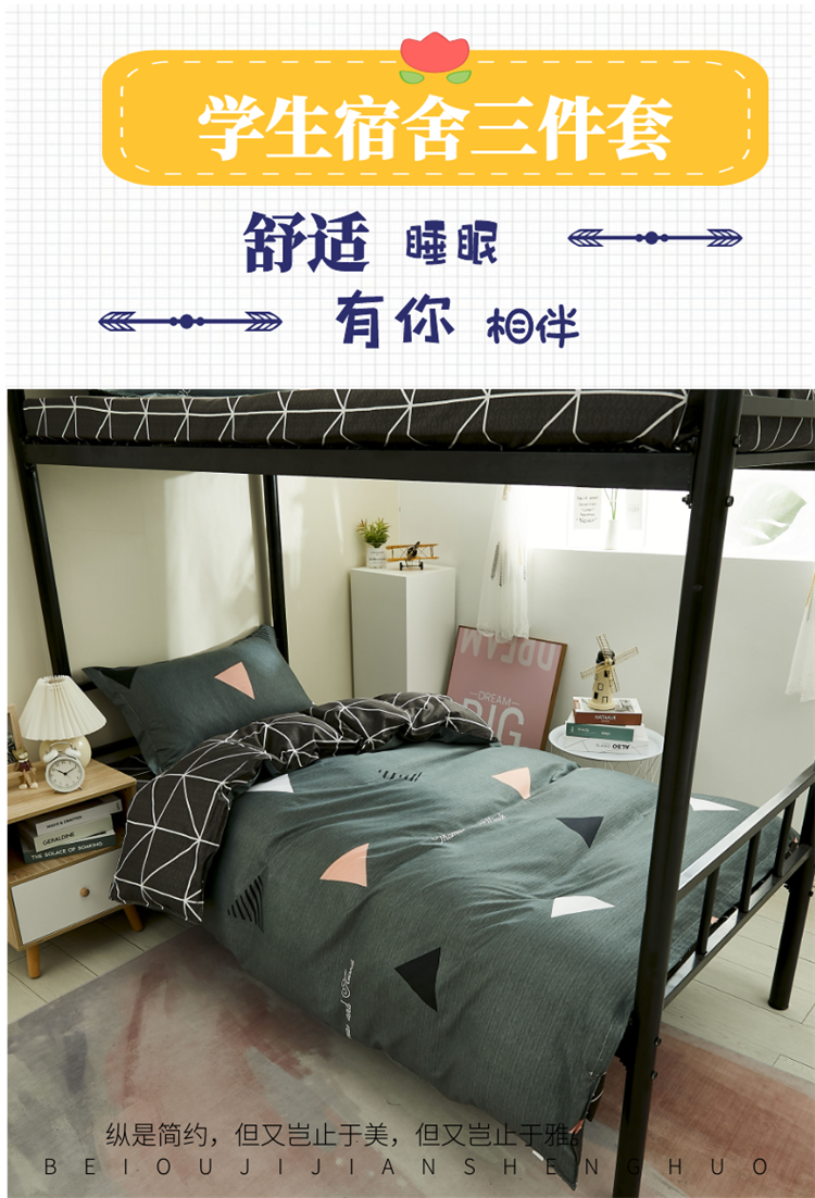 商品名称:曼璐家纺2025新款芦荟棉学生寝室架子床三件套宿舍1.5 简约三角