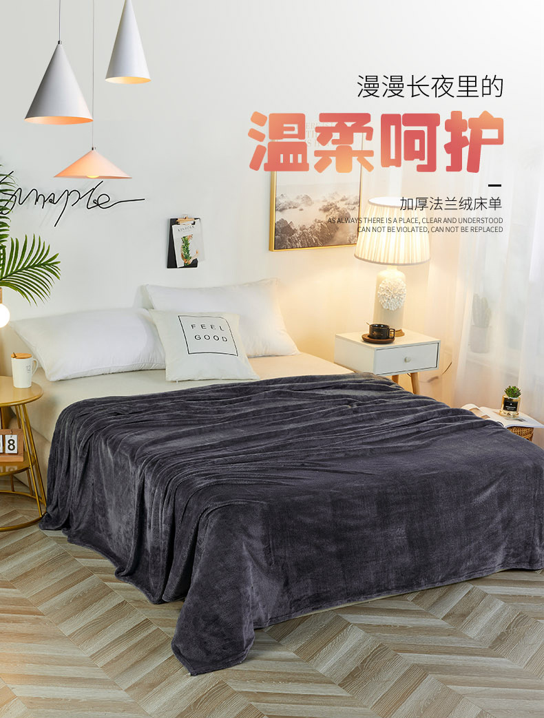 新丽佳家纺 新款220克法莱绒毛毯赠品毛毯床单礼品盖毯 雪青