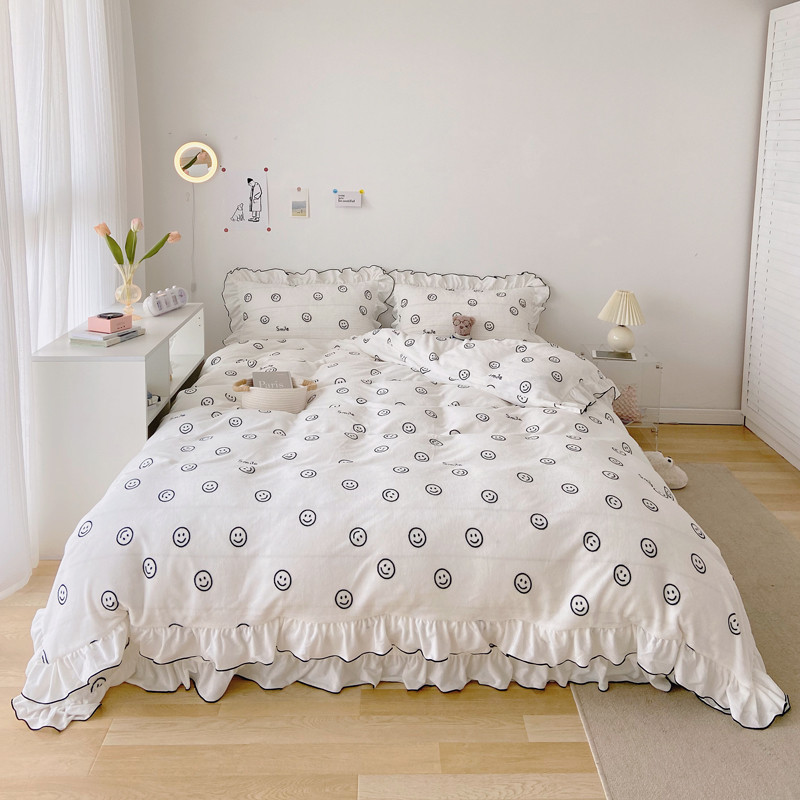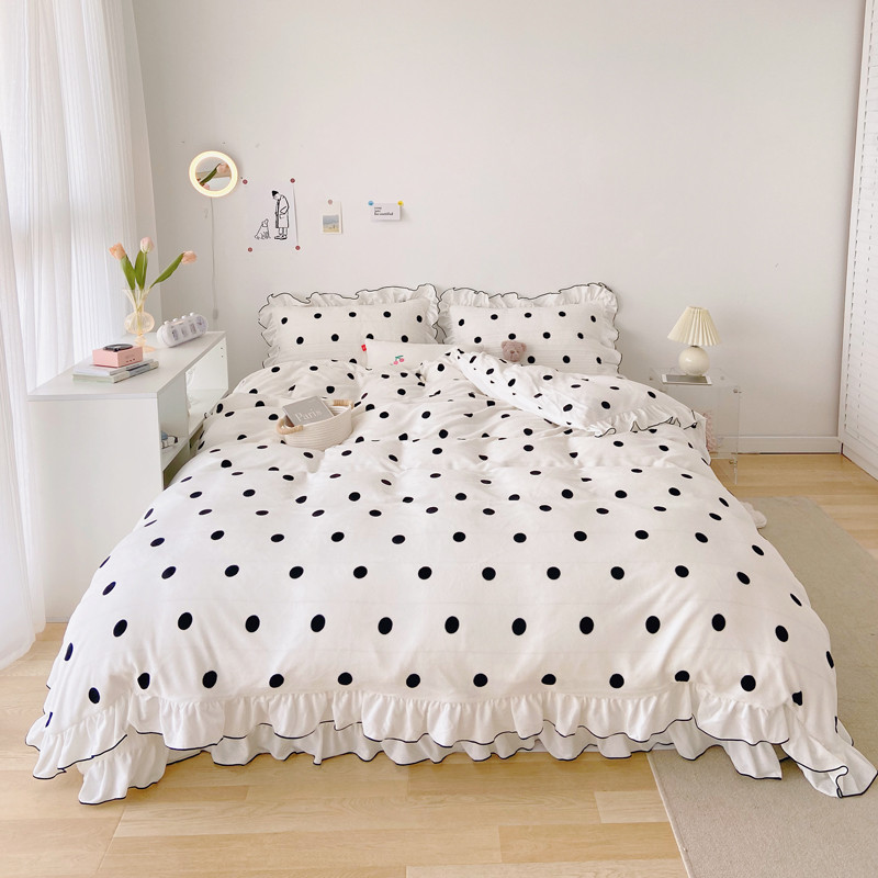 总漫调2021新款ins风波点黑白系列小清新牛奶绒床盖四件套