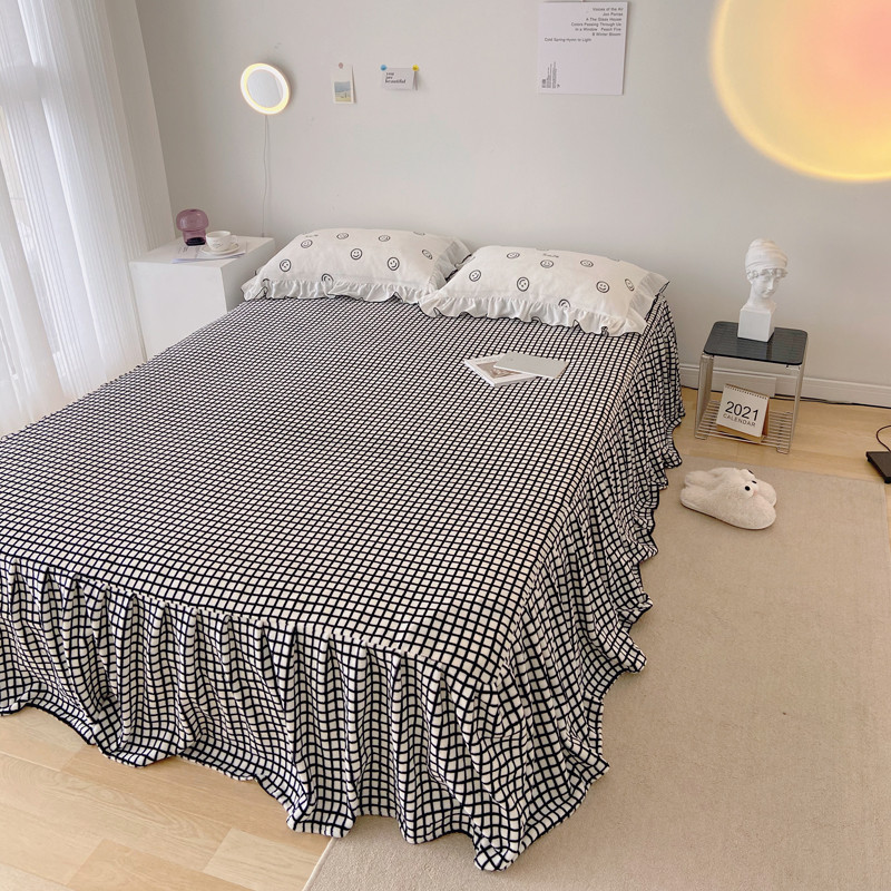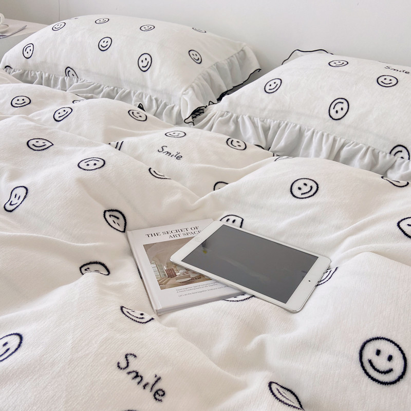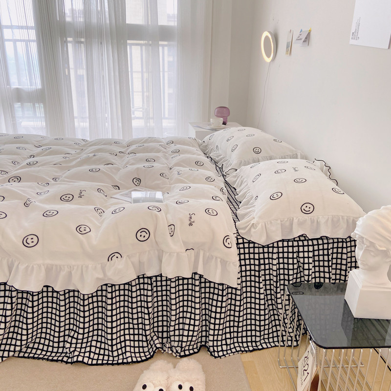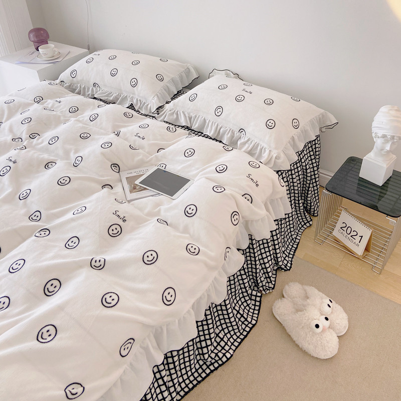 漫调2021新款ins风波点黑白系列小清新牛奶绒床裙四件套 ins笑脸